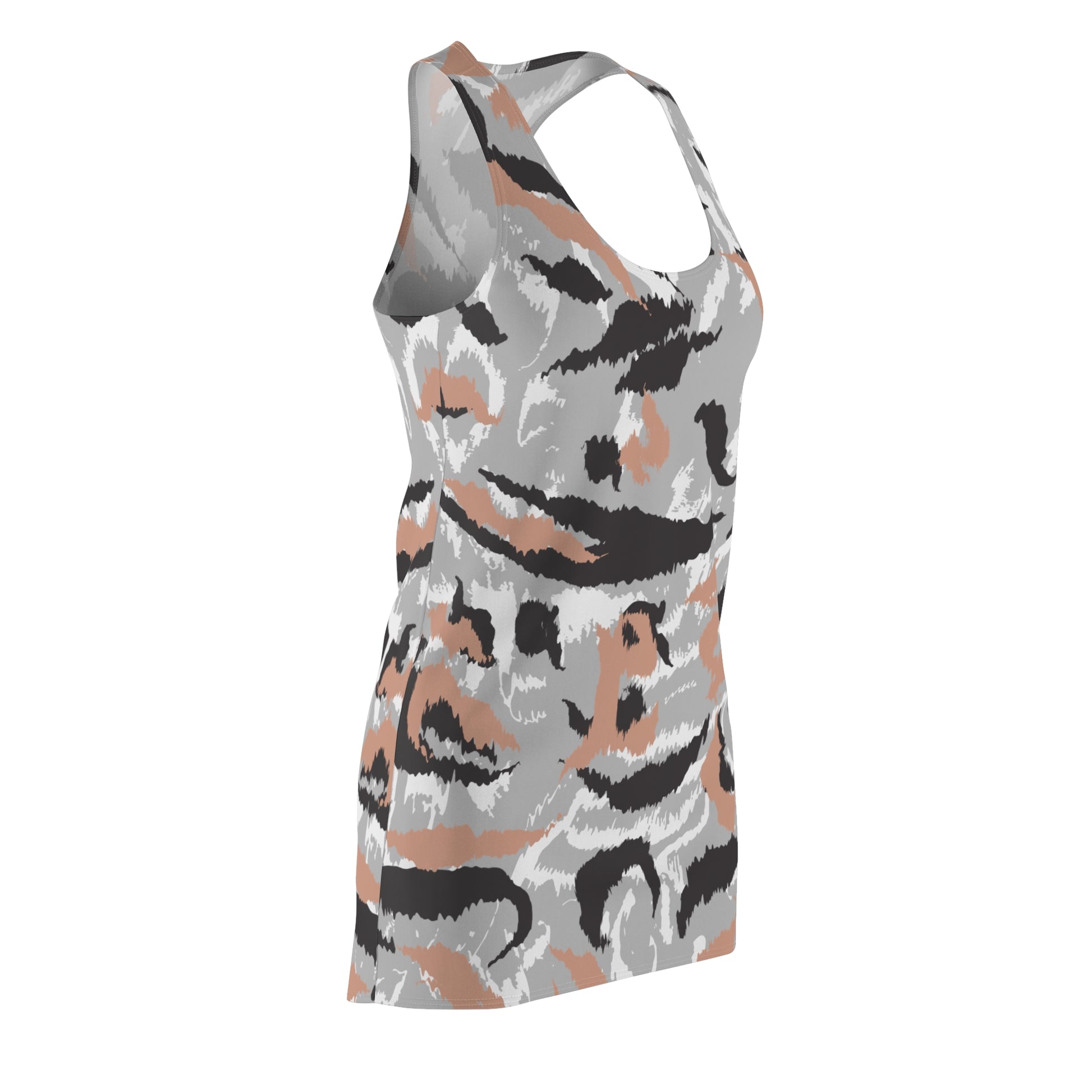 Abstrakt Racerback Kleid – Schwarz Beige Weiss Grau Sommerkleid