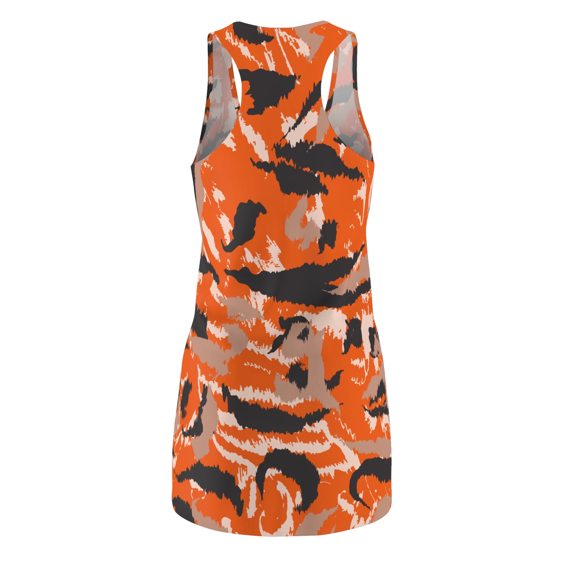 Abstrakt Racerback Kleid – Schwarz Beige Weiss Orange Sommerkleid