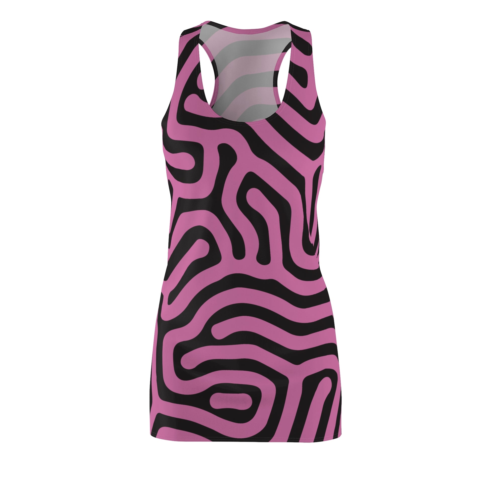 Abstrakt Racerback Kleid – Schwarz Hellpink Damenmode
