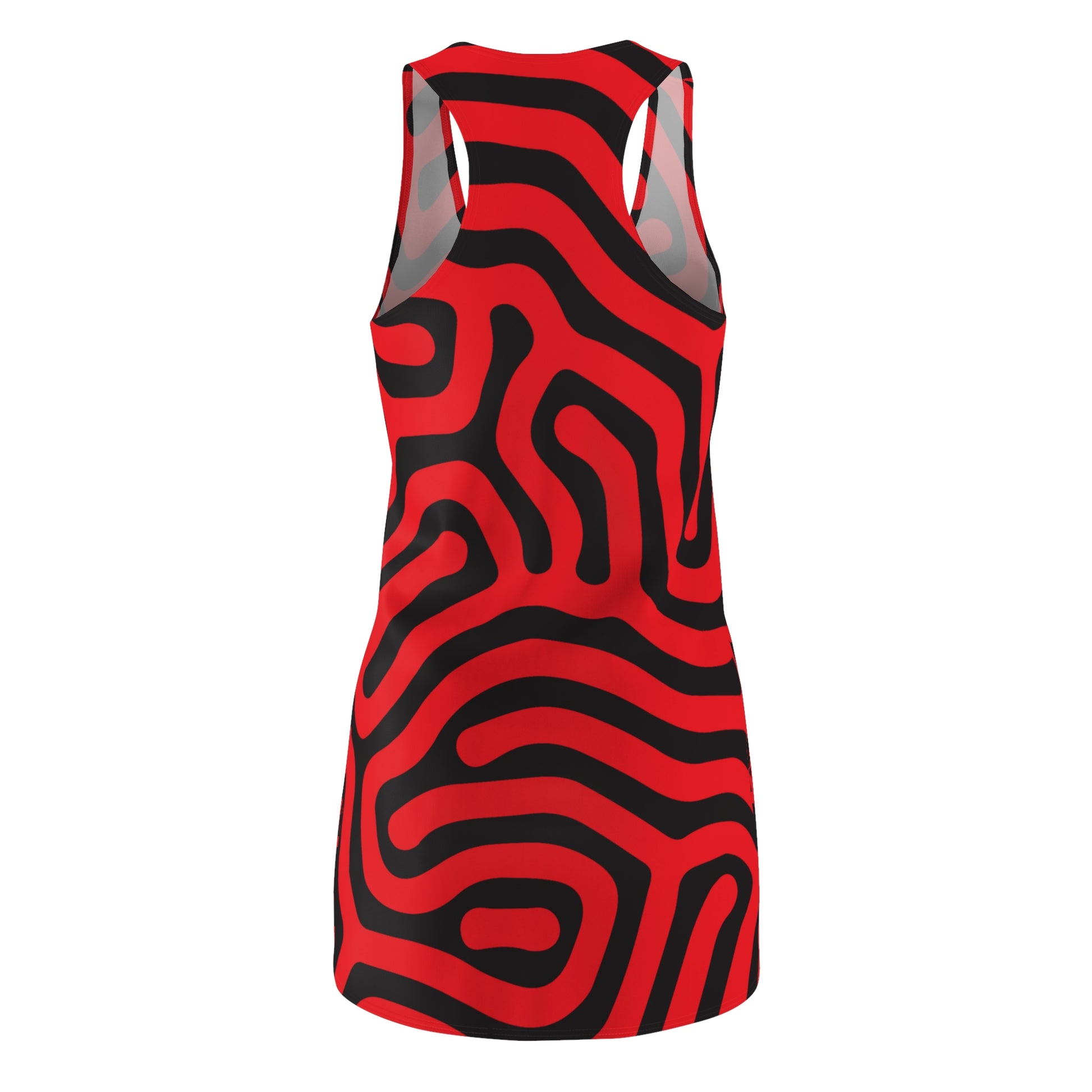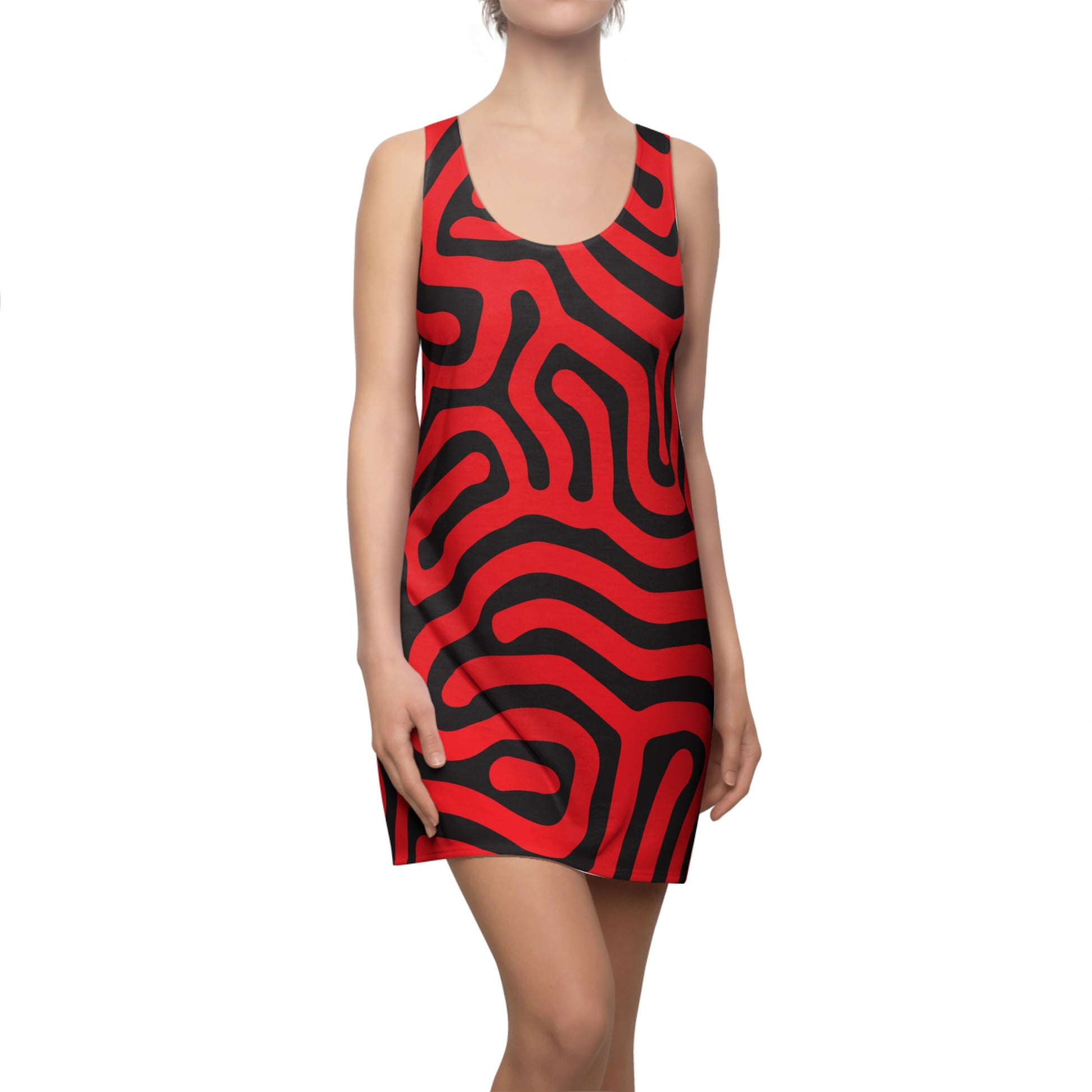 Abstrakt Racerback Kleid – Schwarz Rot Damenmode