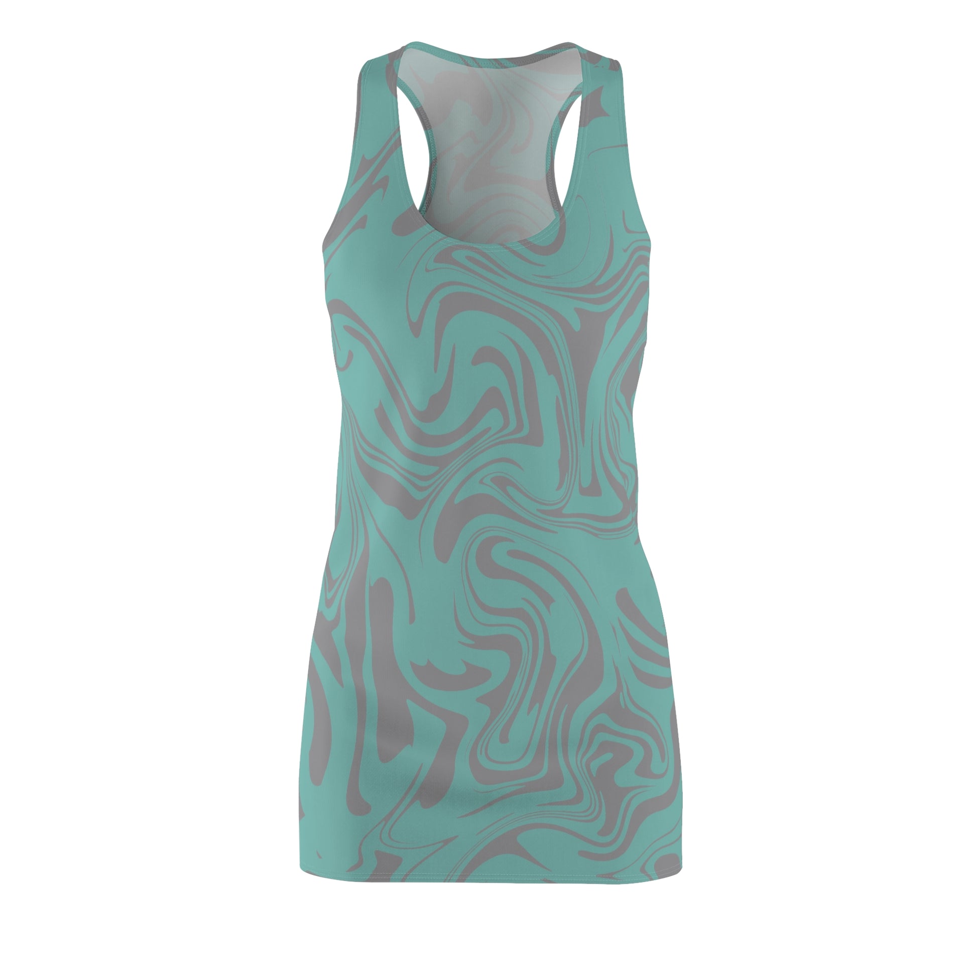 Aqua Grau Marmor Racerback Kleid – Trendige Sommer Damenmode