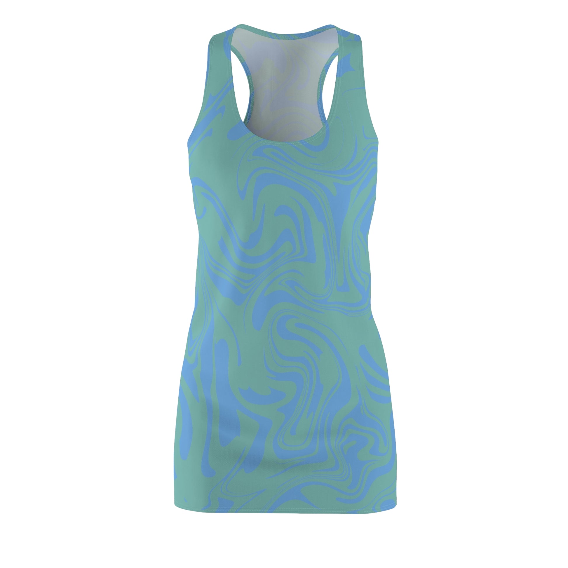Aqua Hellblau Marmor Racerback Kleid – Trendige Sommer Damenmode
