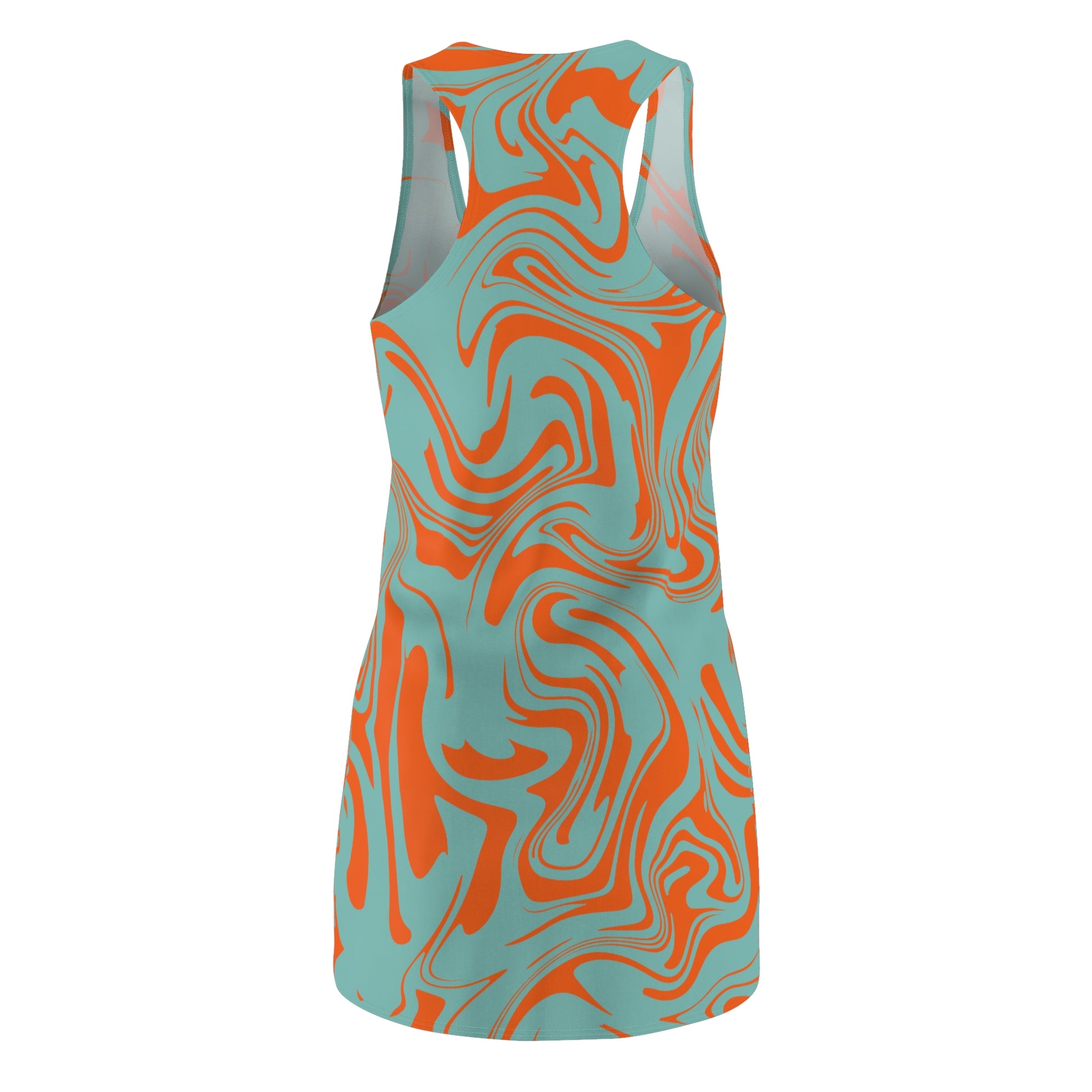 Aqua Orange Marmor Racerback Kleid – Trendige Sommer Damenmode