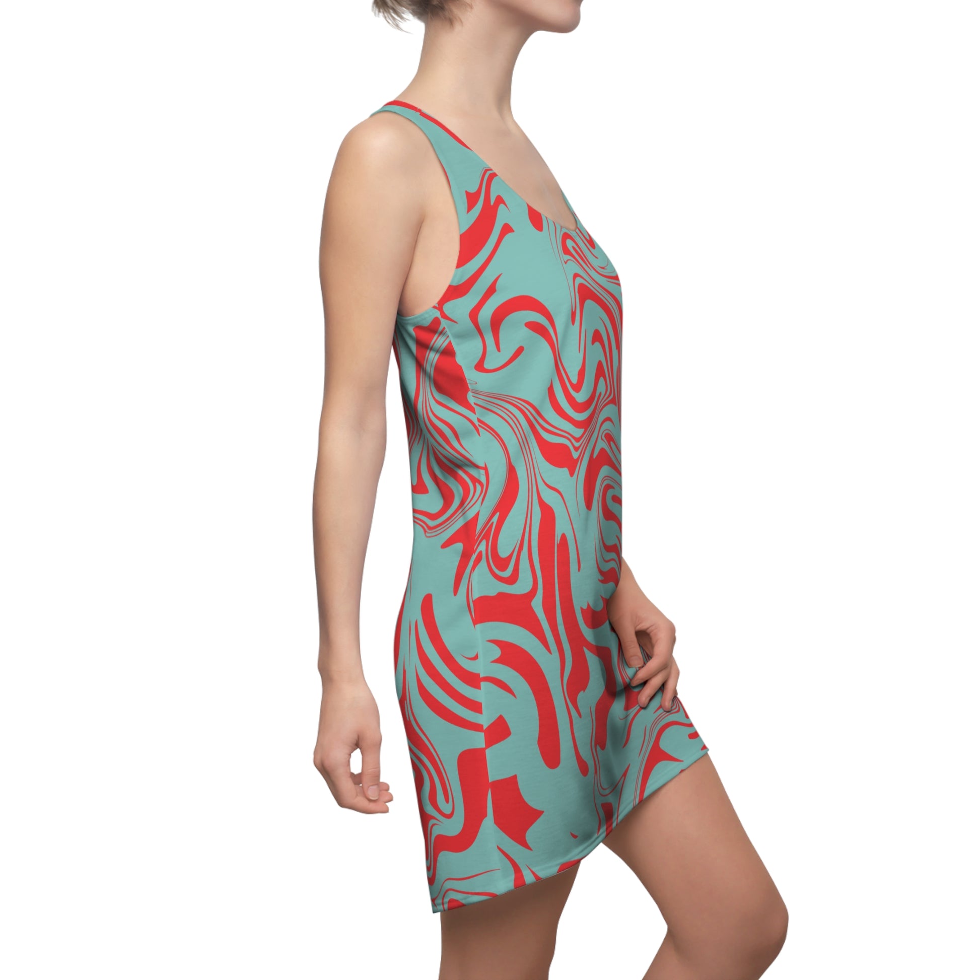 Aqua Rot Marmor Racerback Kleid – Trendige Sommer Damenmode