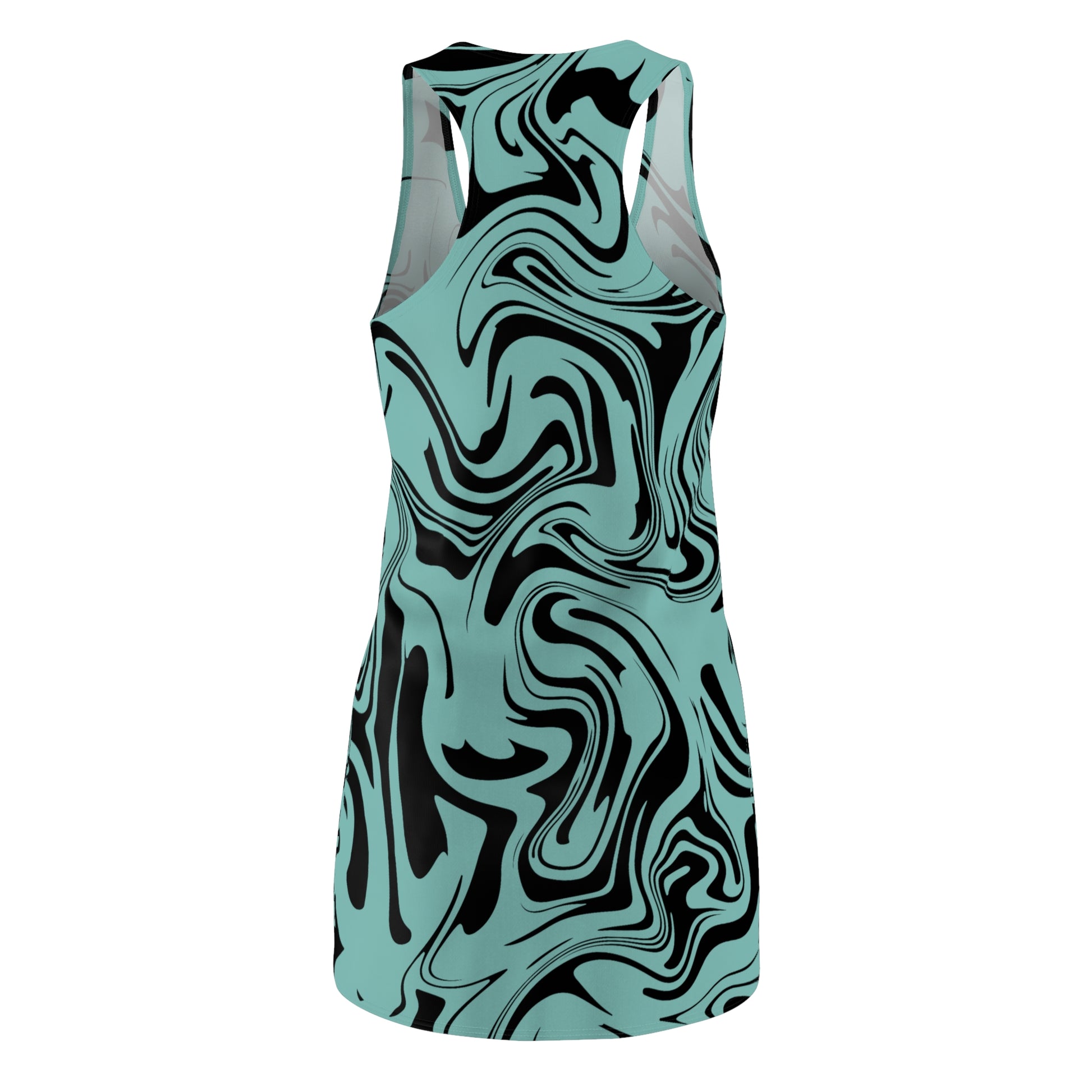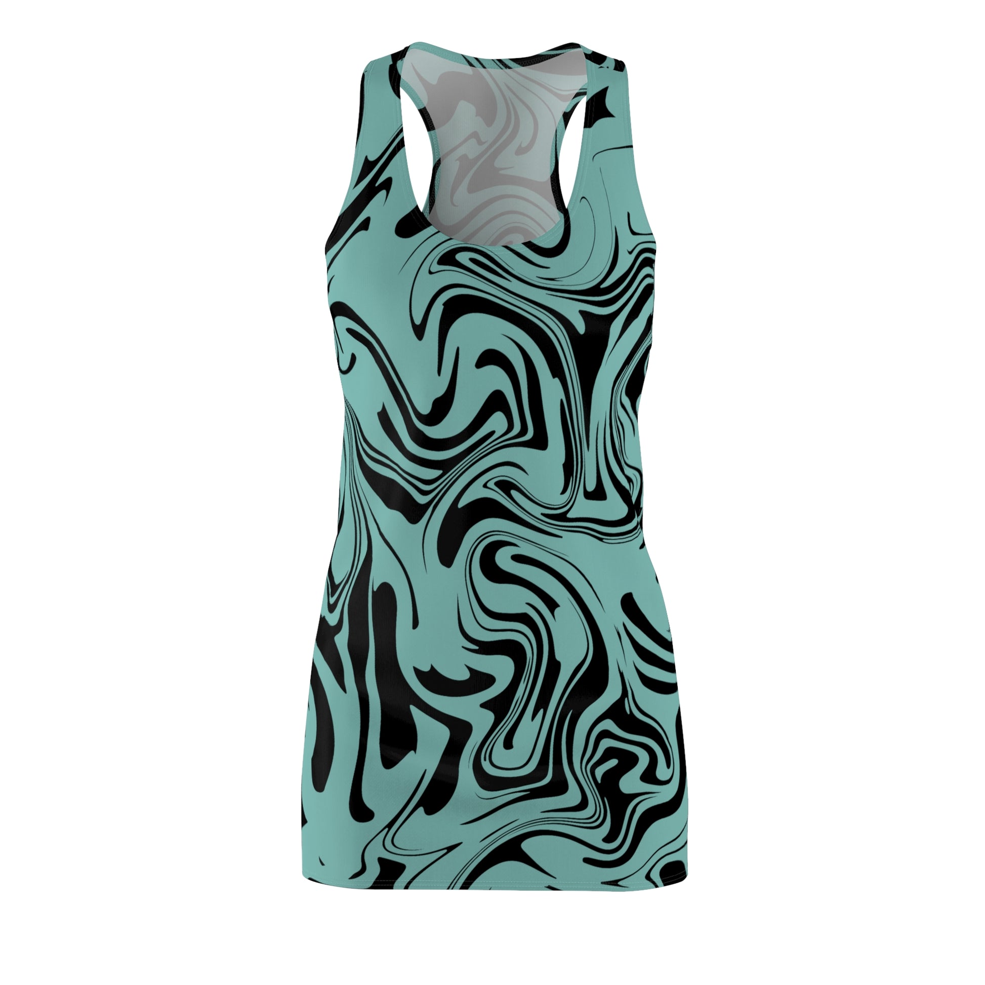 Aqua Schwarz Marmor Racerback Kleid – Trendige Sommer Damenmode