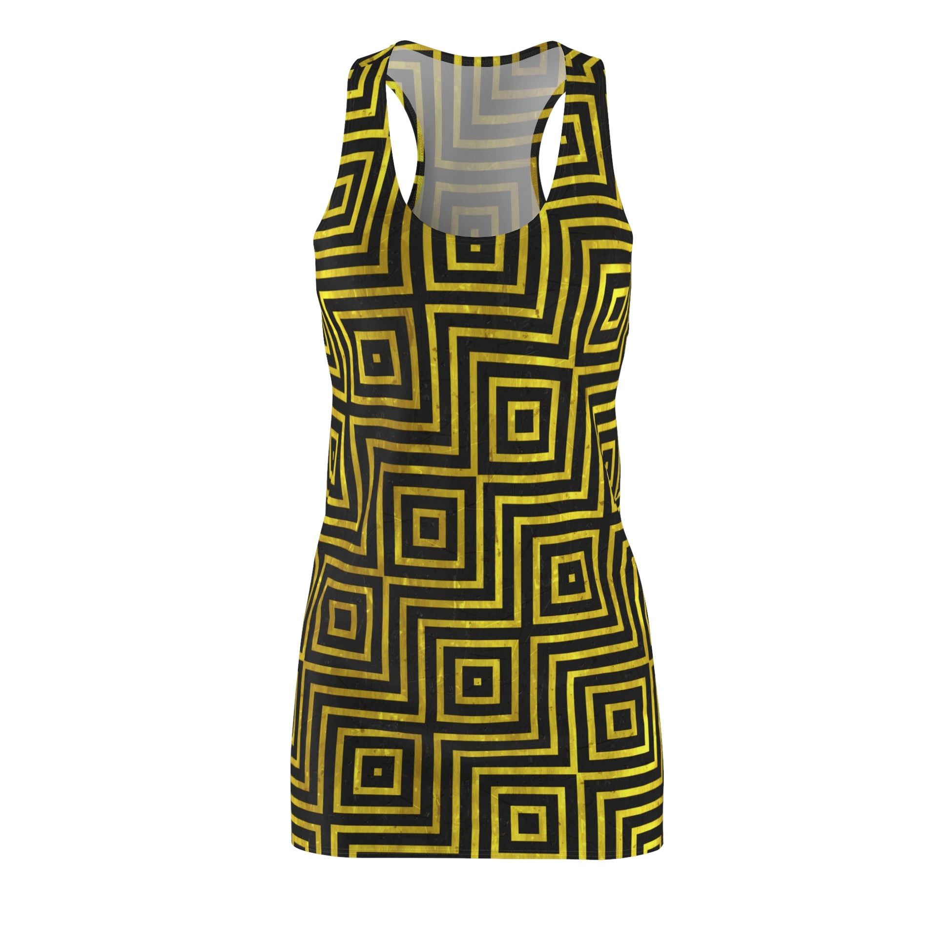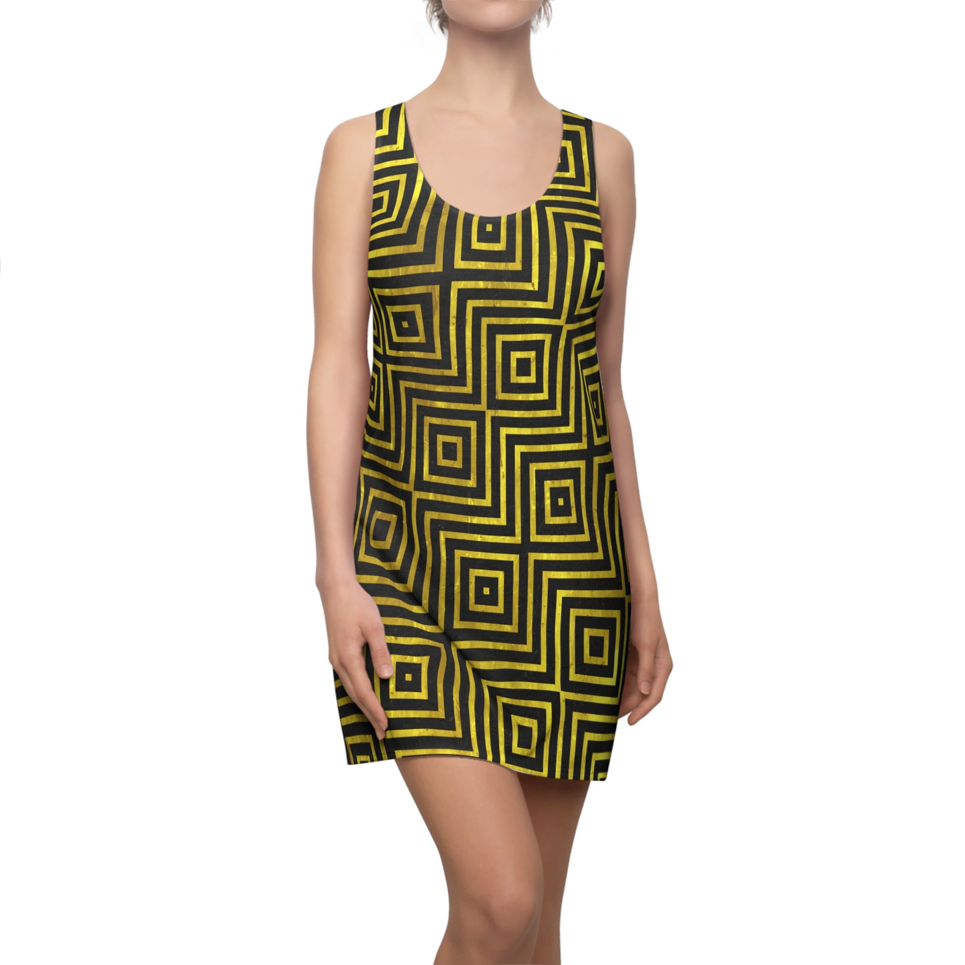 Gelb Schwarz Geometrie Racerback Kleid – Trendy Sommerkleid