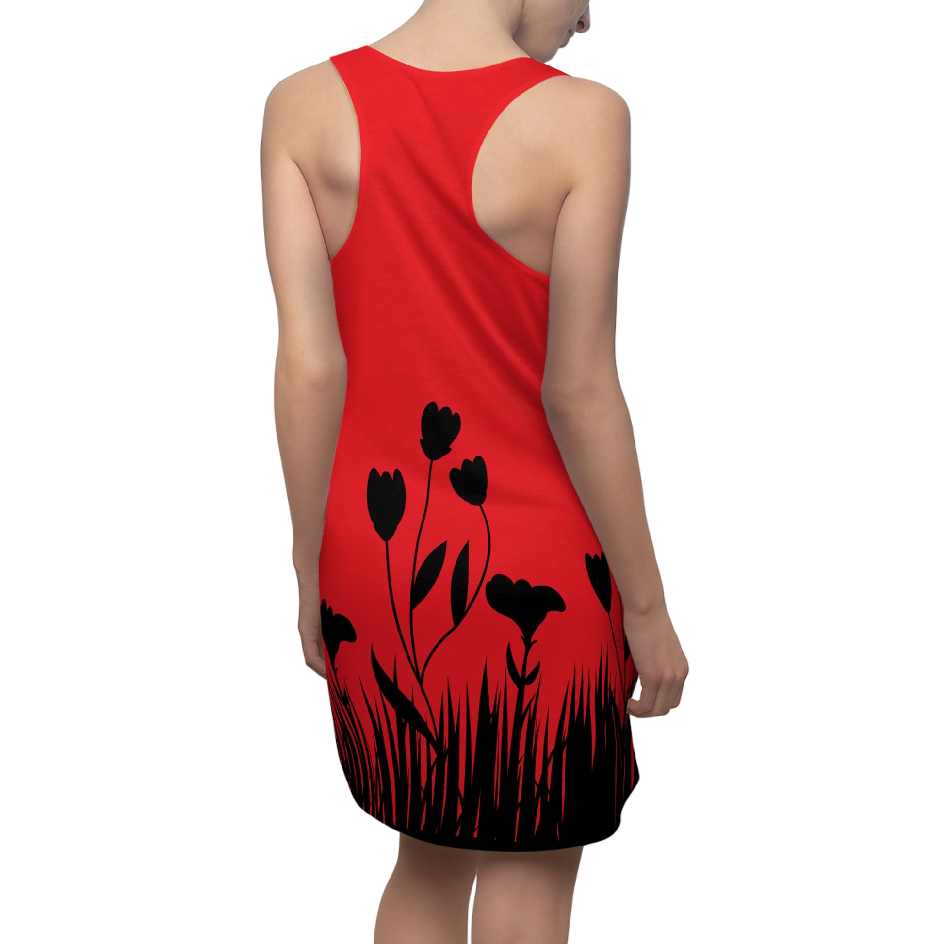 Blumensilhouette Racerback Kleid – Elegant Schwarz Rot