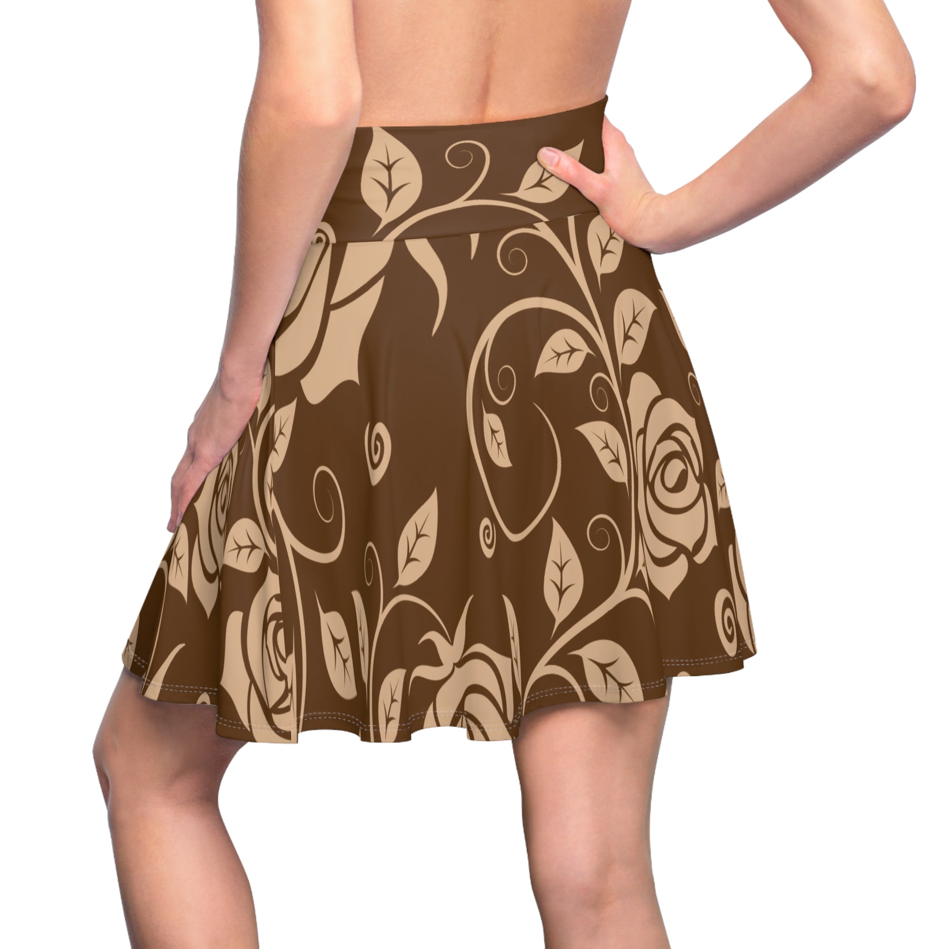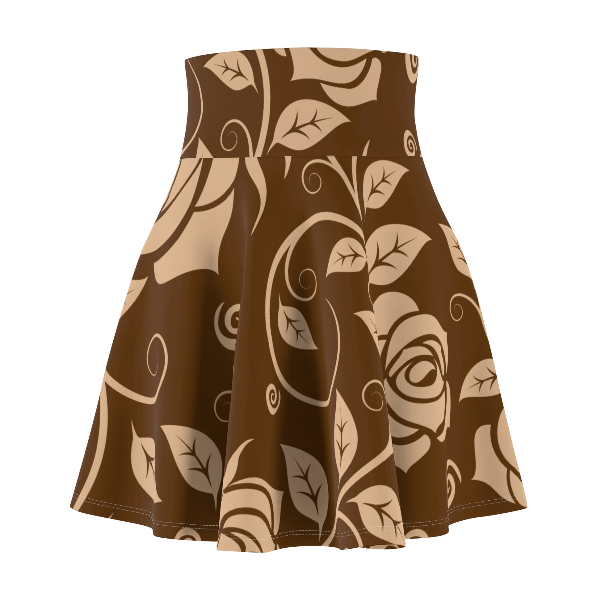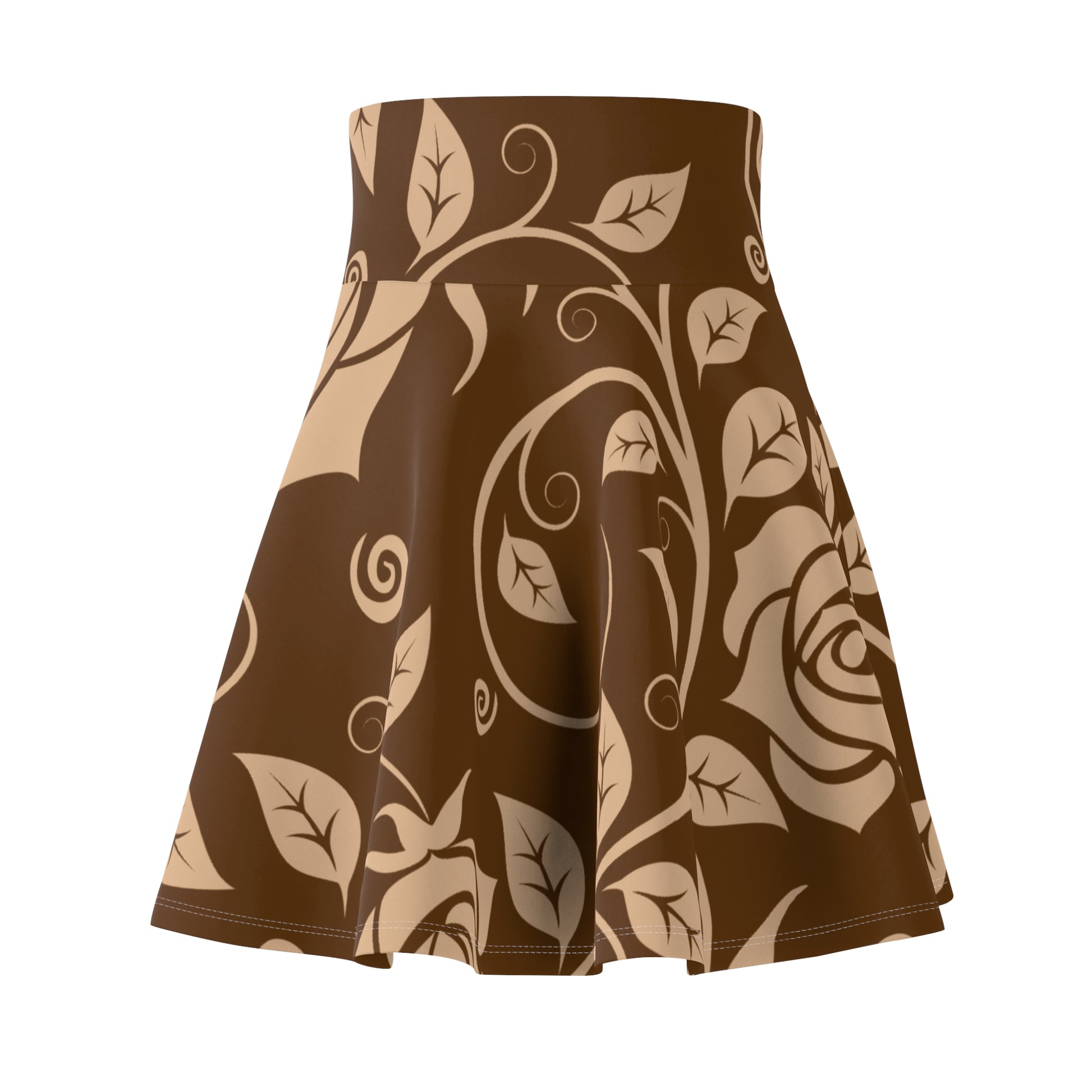 Brauner Damen Rock Floral Skater Elegant Frühling Sommer Casual