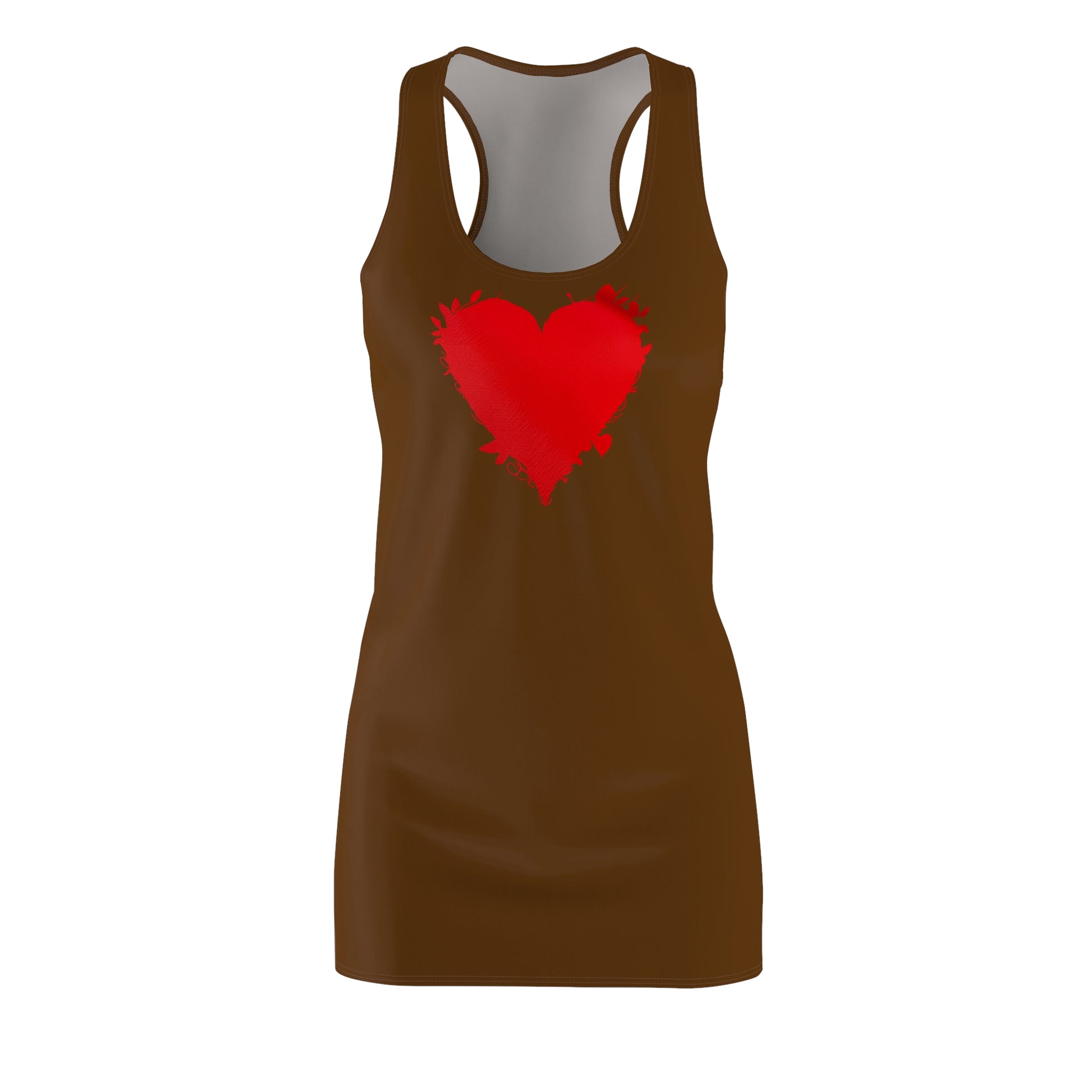 Braunes Racerback Kleid mit rotem Herzmotiv – Minimal Design