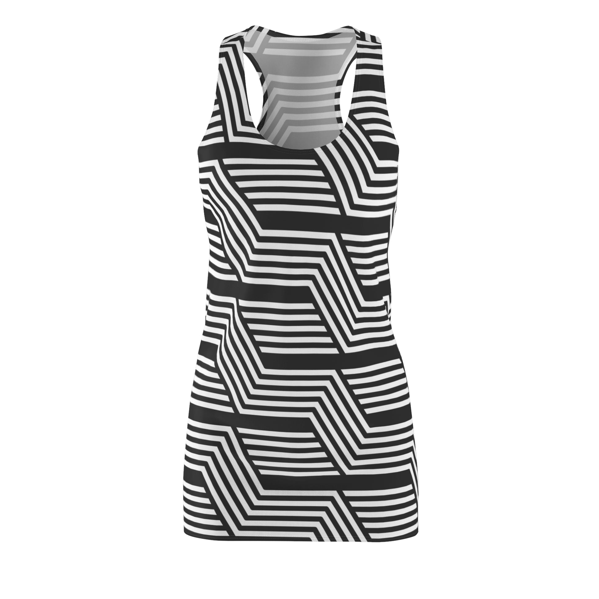 Schwarz Weiß Geometrie Racerback Kleid – Modernes Sommerkleid