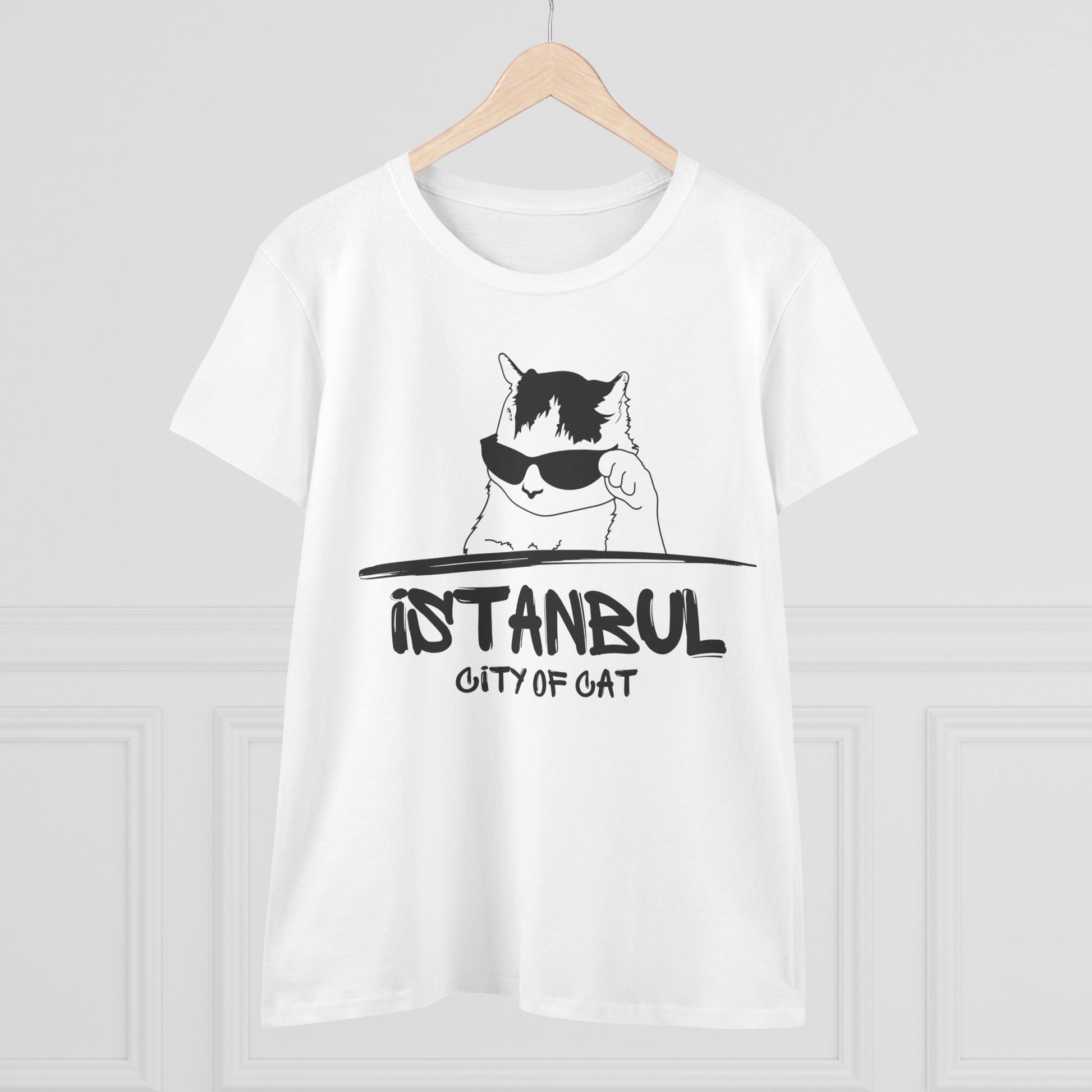 Başlık: Kadın Tişört "İstanbul Kediler Şehri" | Kedi Tasarımı | Yumuşak Kedi Tişört | Kedi Severler İçin Hediye