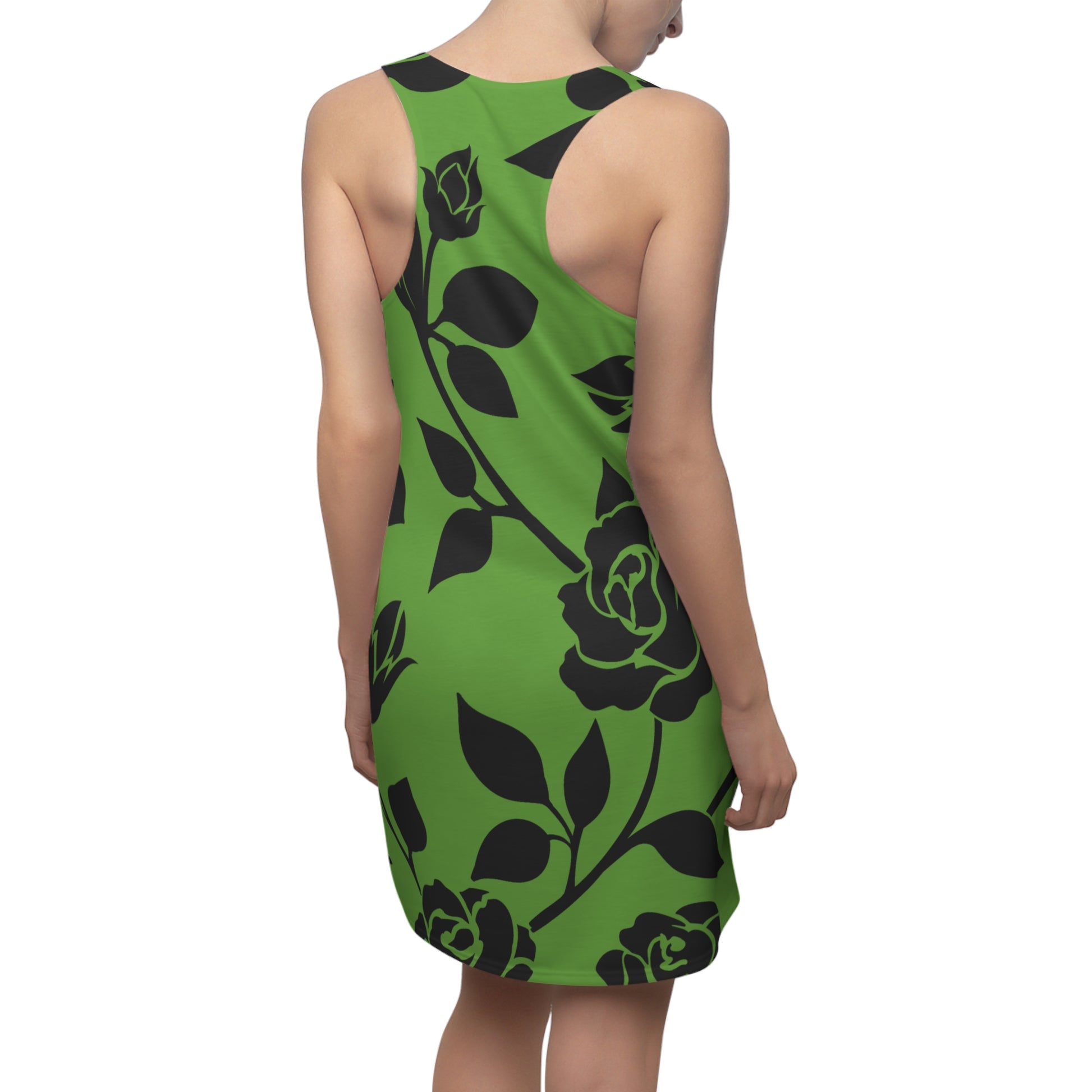 Rosen Racerback Kleid – Elegant Schwarz Grün Design