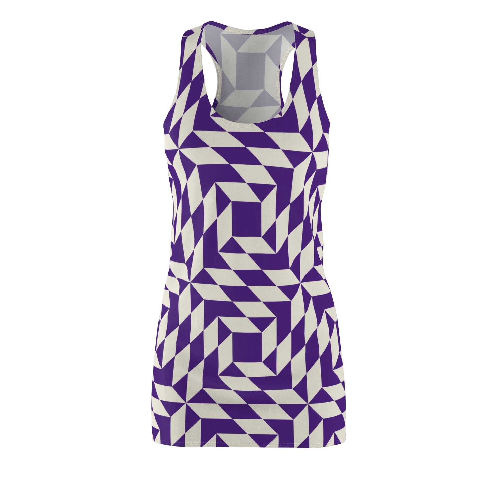 Racerback Kleid Damen – Lila Sommerkleid mit geometrischem Muster