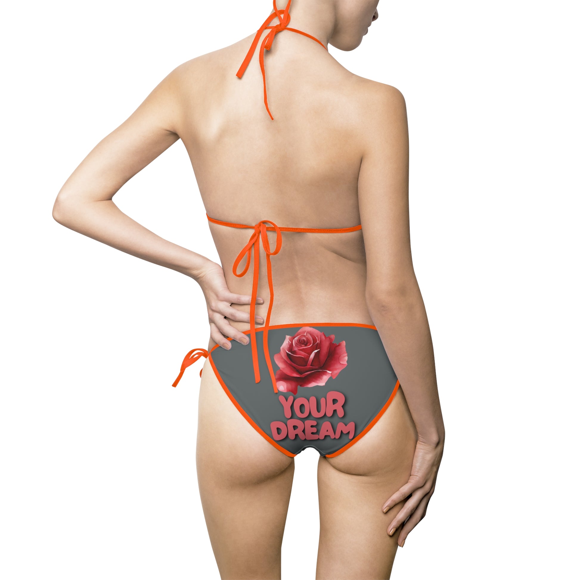 Damen Bikini YOUR DREAM Rosenmotiv Sommermode Strand grau