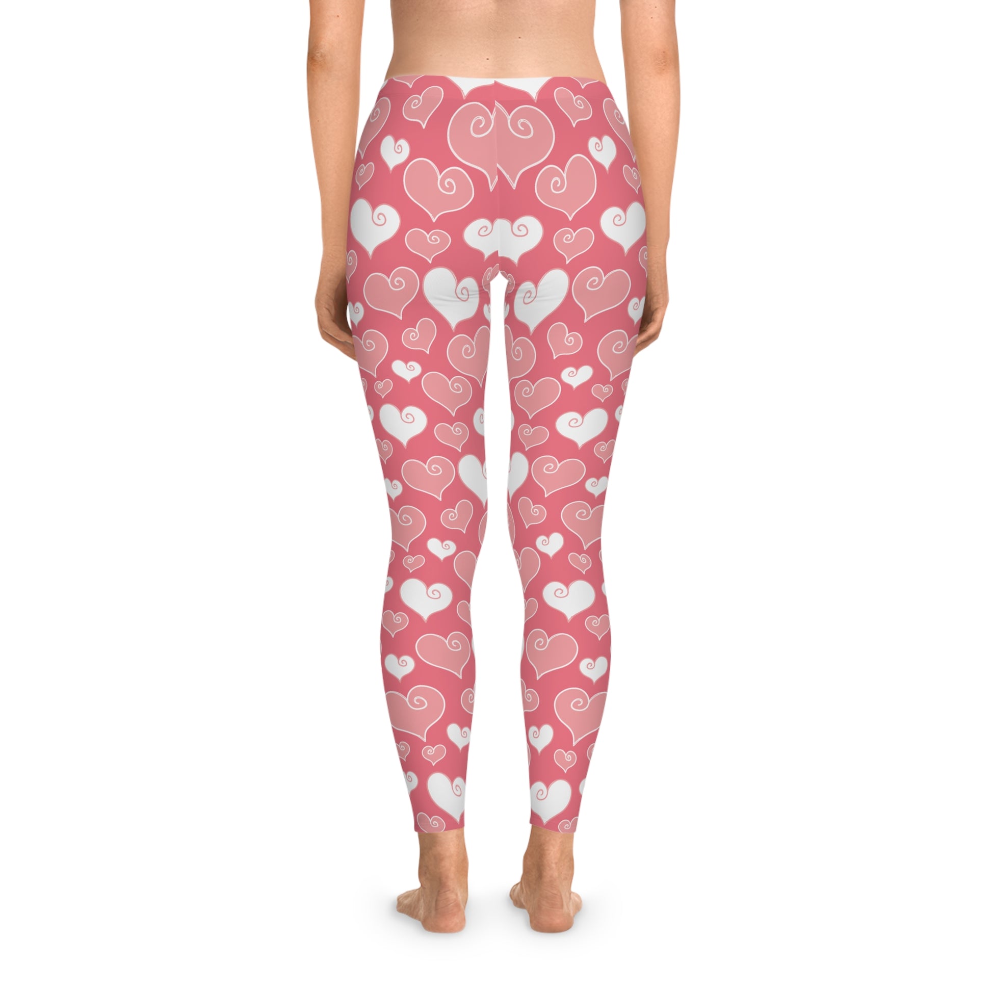 这款女士紧身裤兼具舒适与时尚。满版爱心印花增添俏皮气息 – 适合日常穿搭、瑜伽或居家放松。柔软的松紧腰带和高弹性面料确保舒适合身。