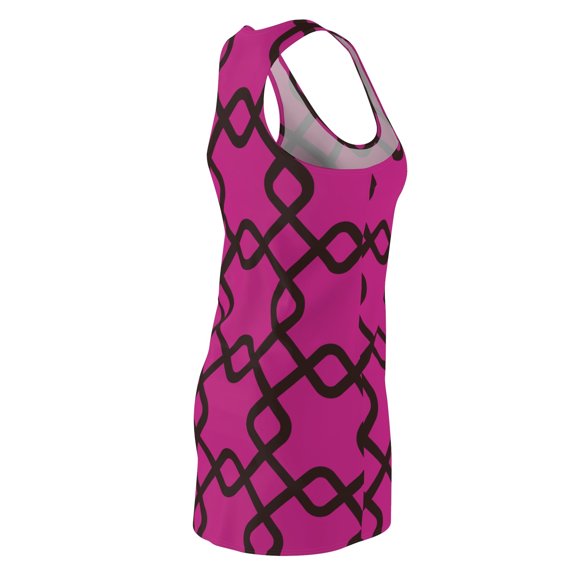 Damen Racerback Kleid Pink mit schwarzem Muster – Sommer Freizeitkleid