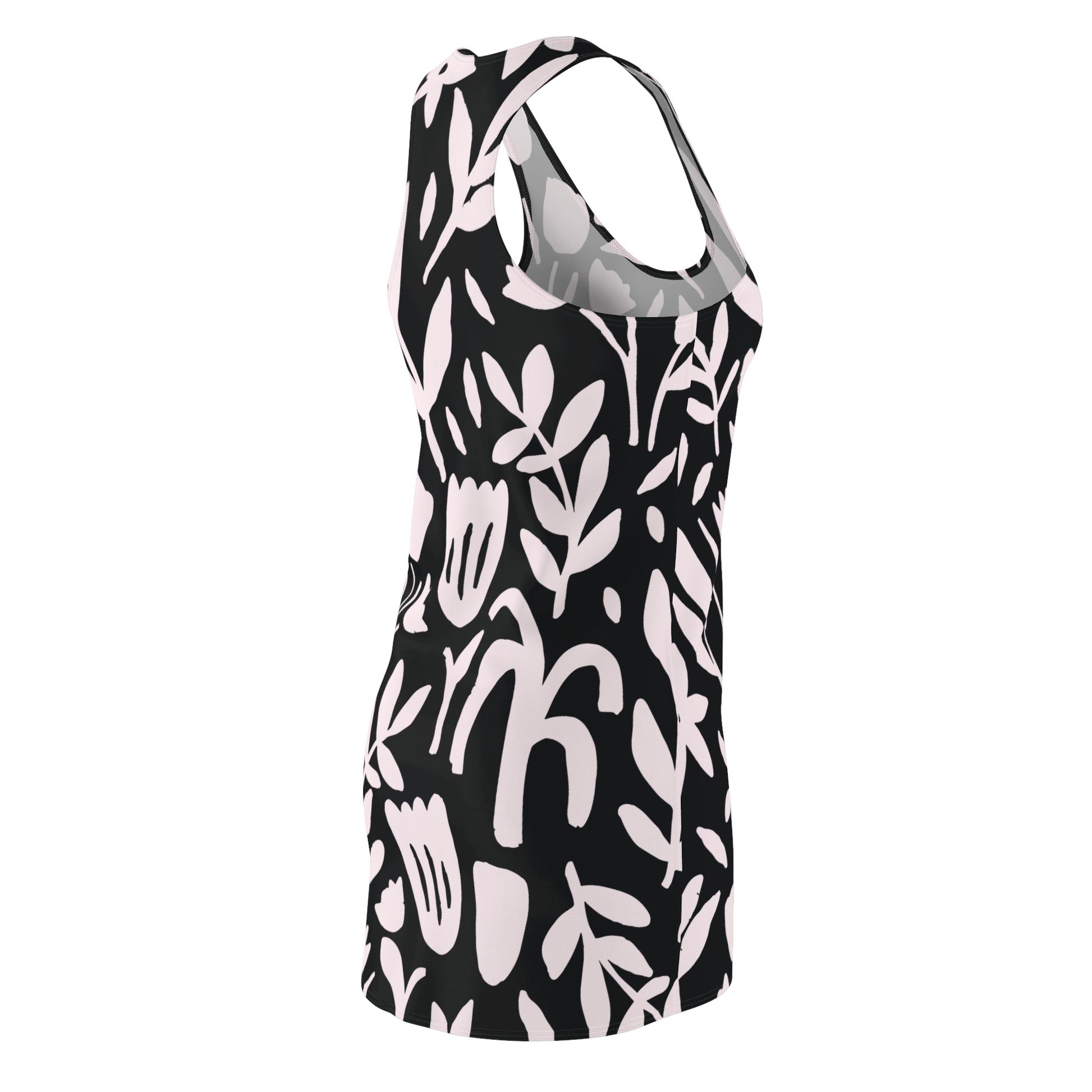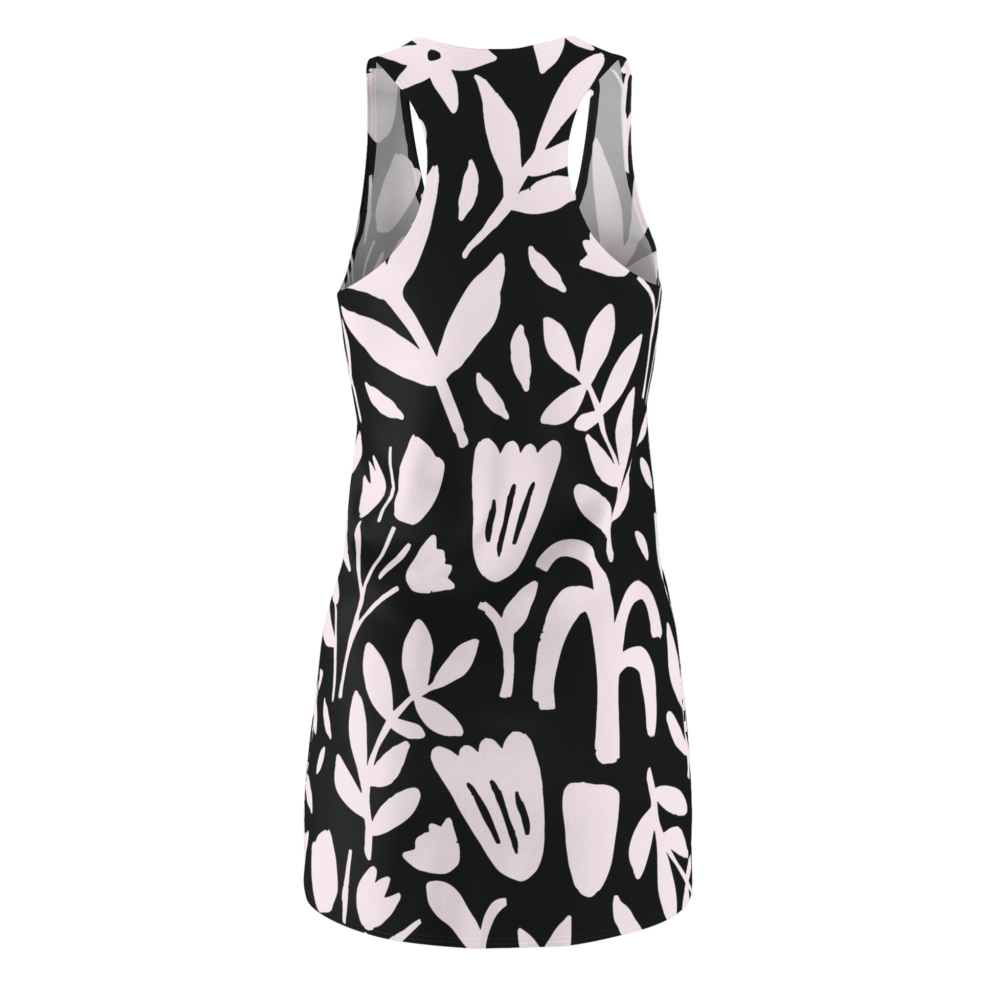 Schwarz Rosa Blumen Racerback Kleid – Sommer Damenmode