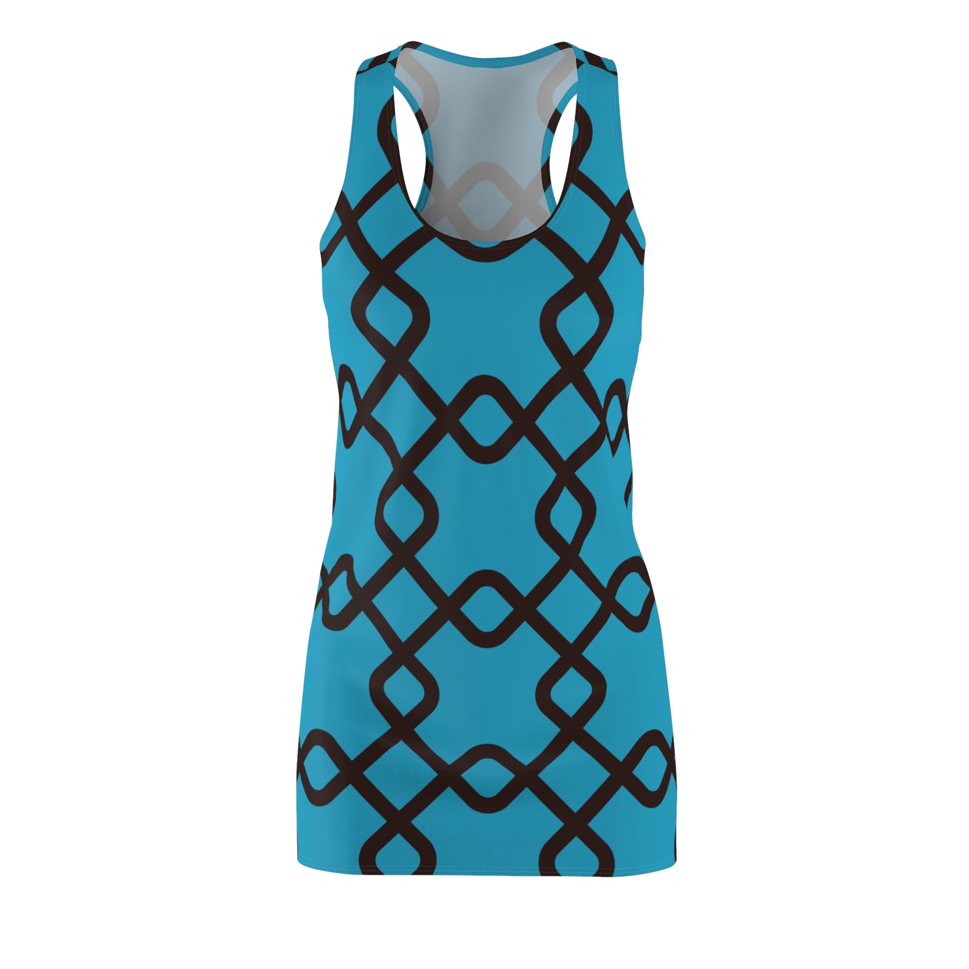 Damen Racerback Kleid Türkis mit schwarzem Muster – Sommer Freizeitkleid