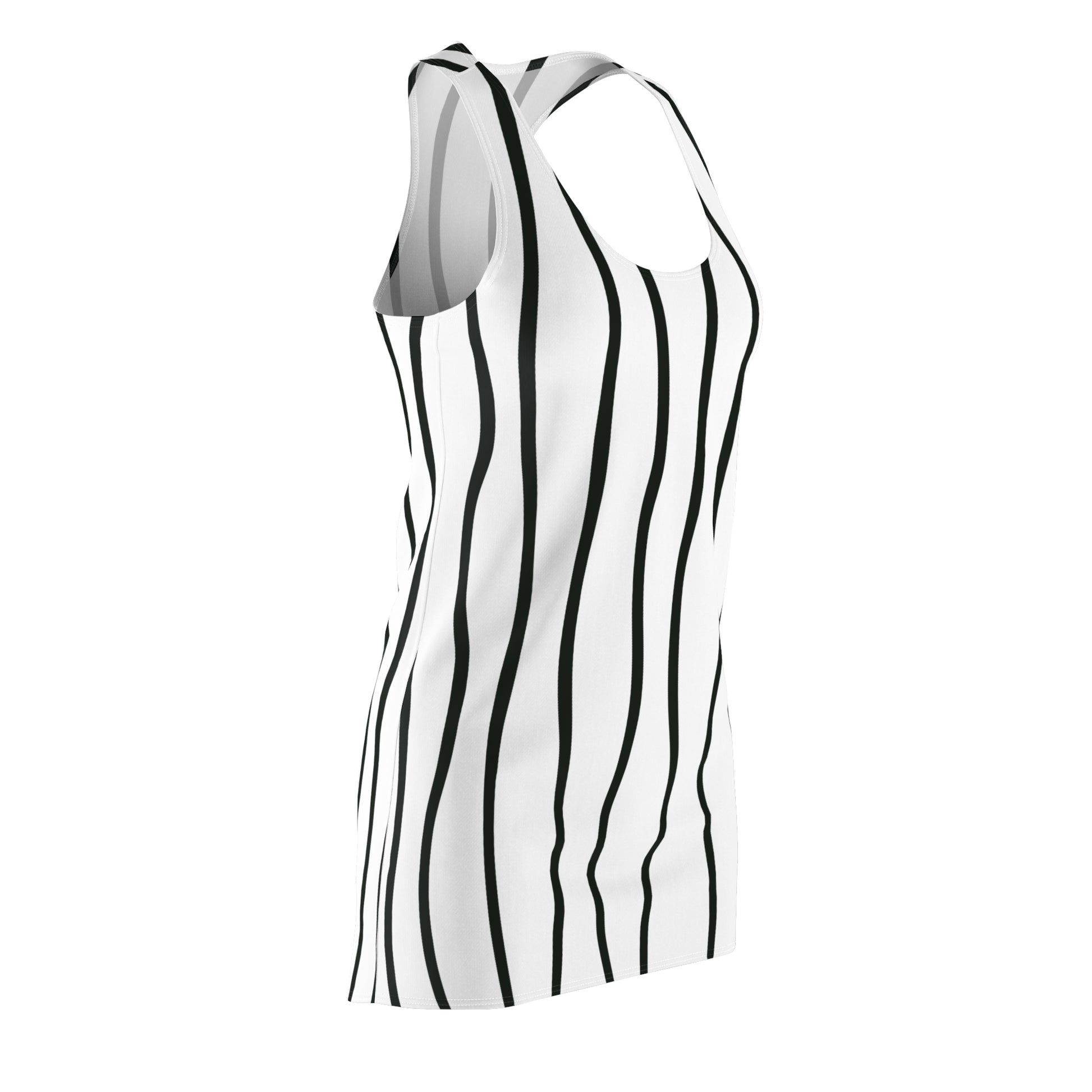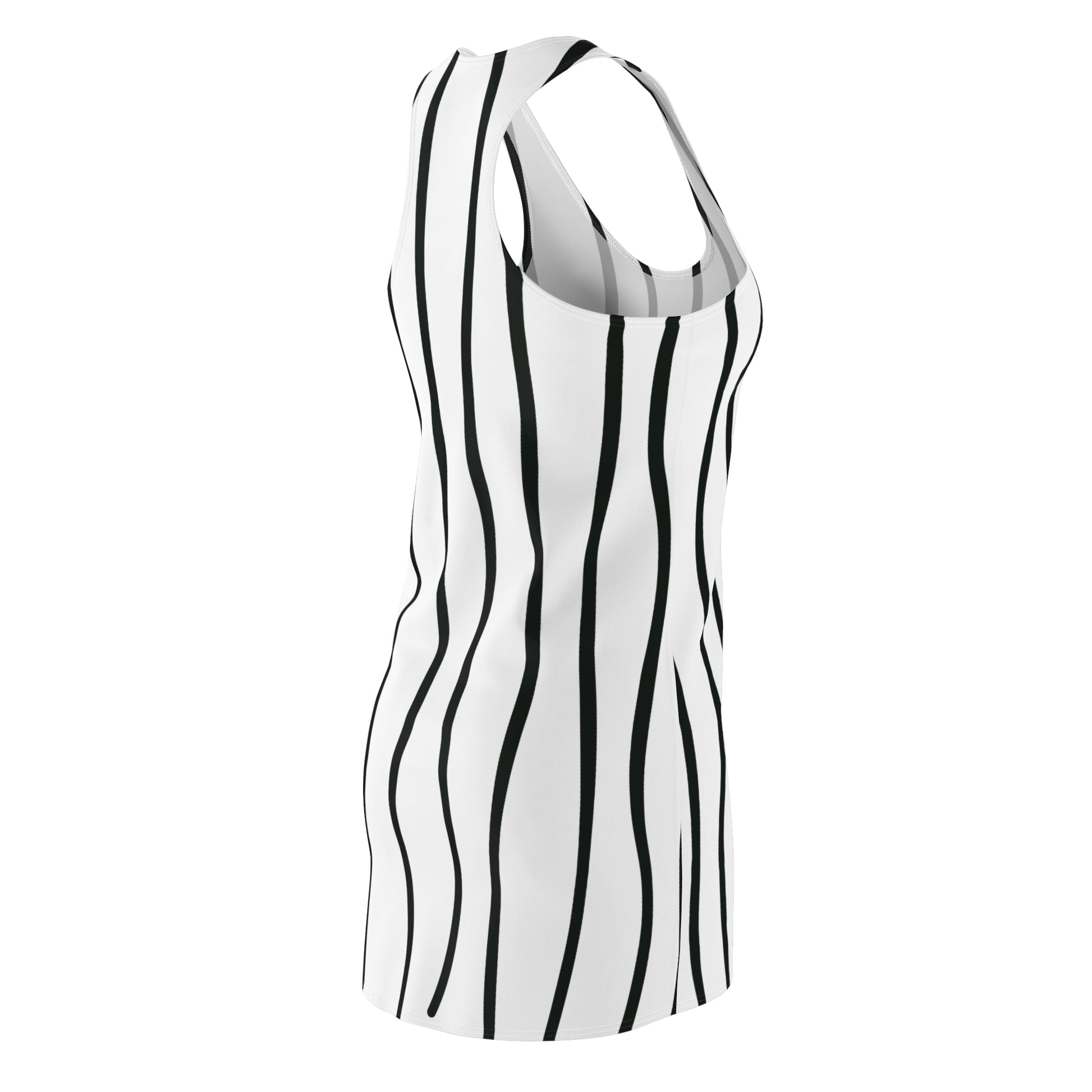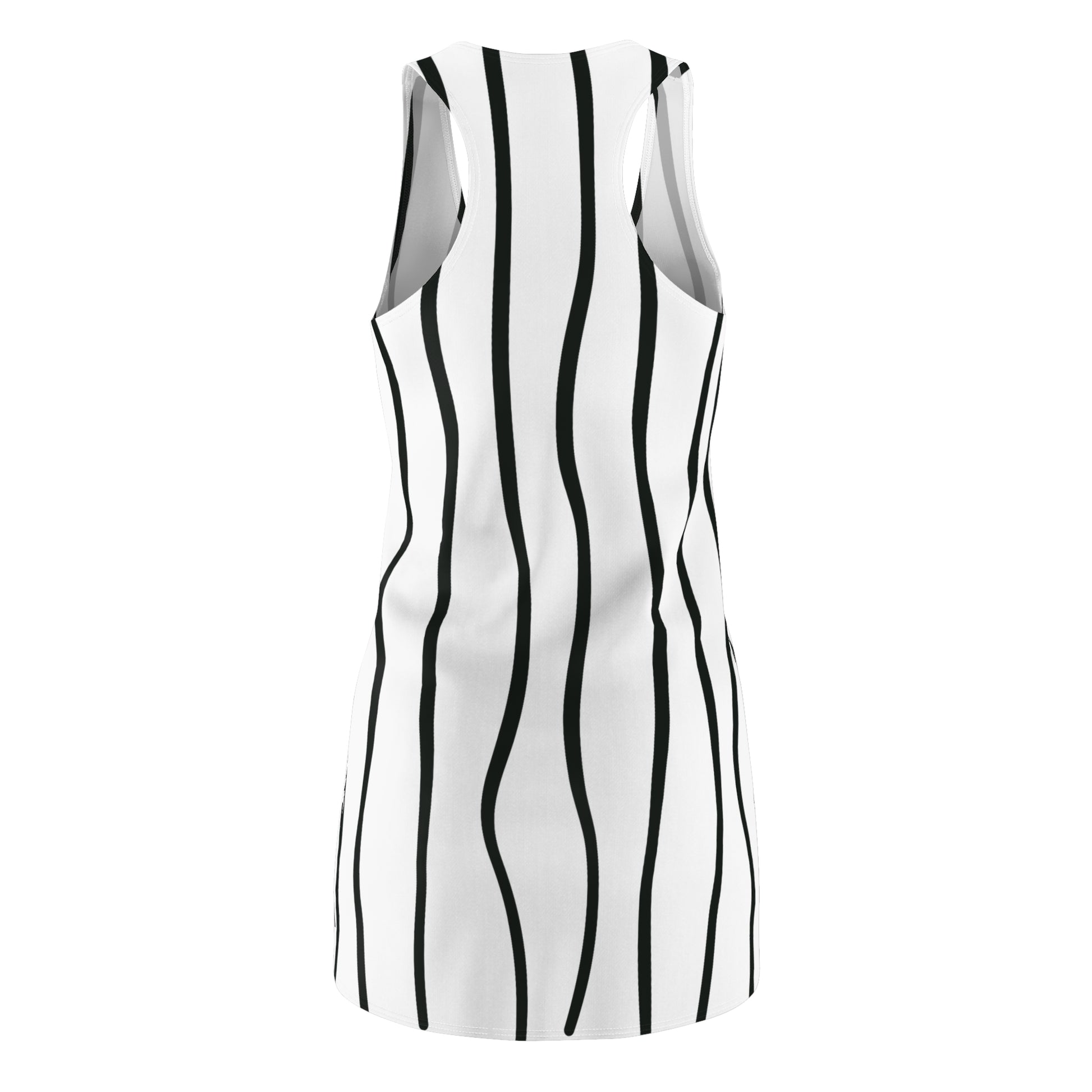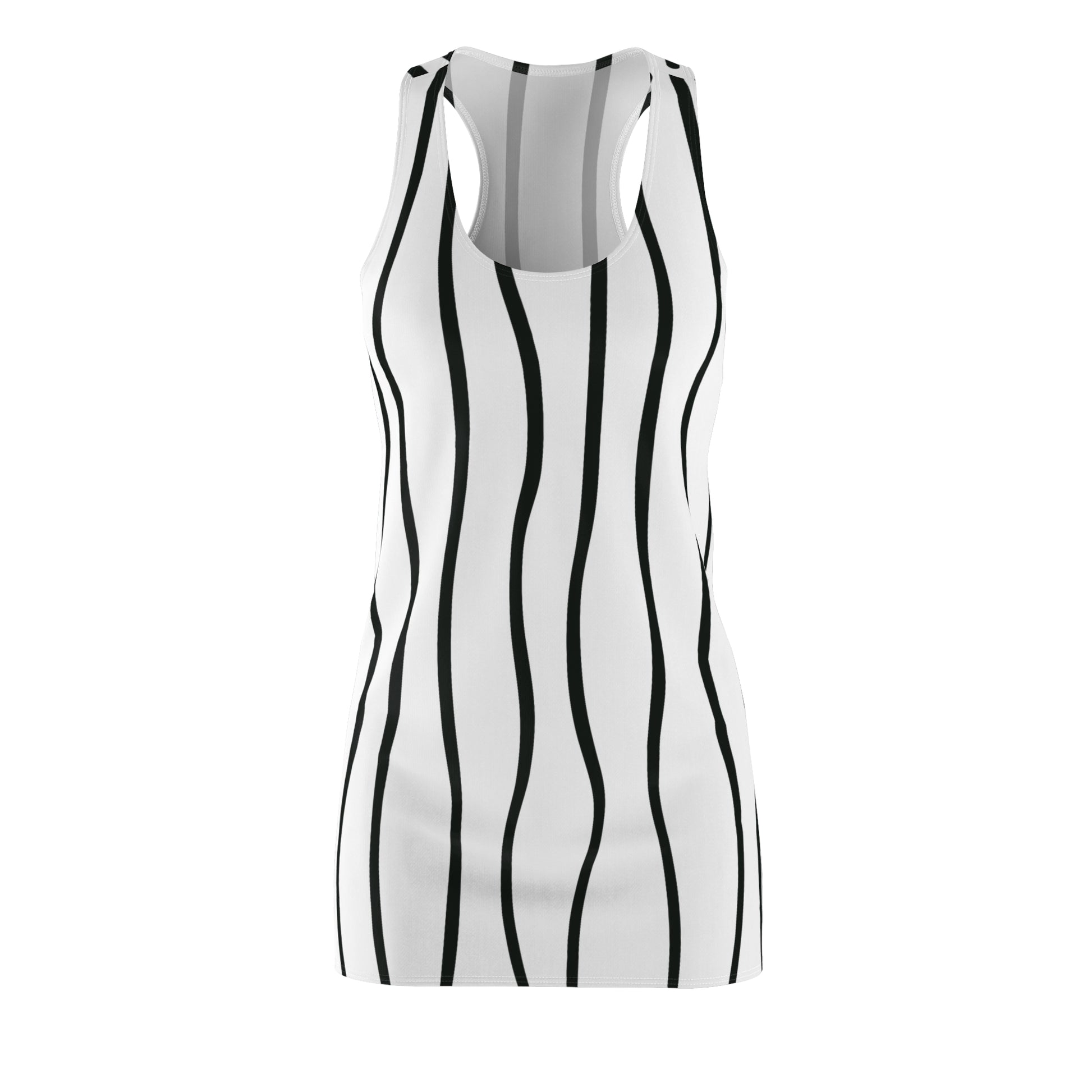 Weiß Schwarz Wellen Racerback Kleid – Modernes Sommerkleid