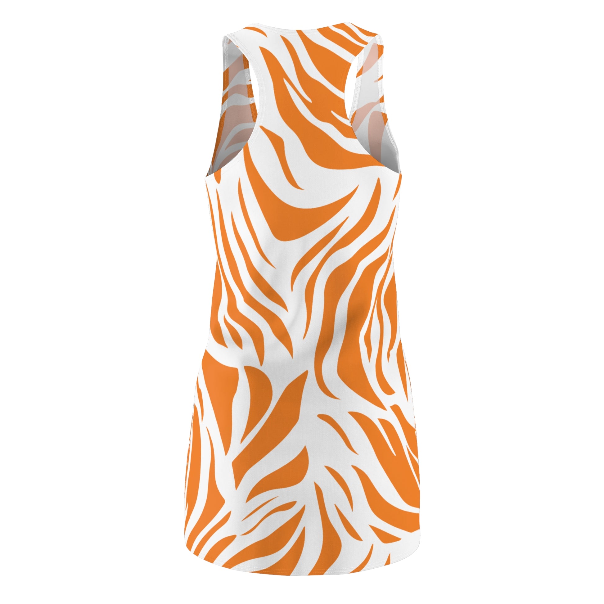 Damen Racerback Kleid – Zebra Print in Orange & Weiß, Vibrant Dress