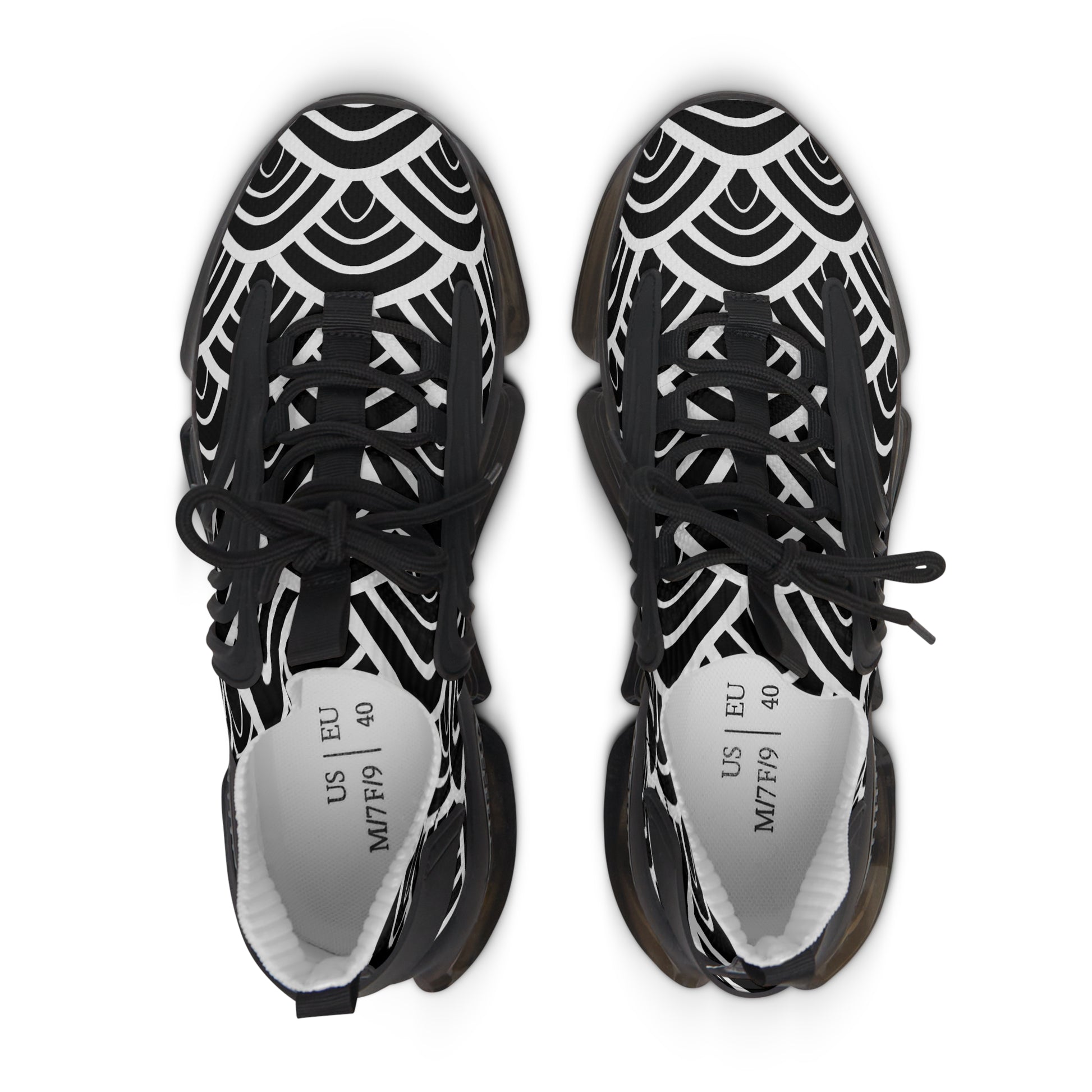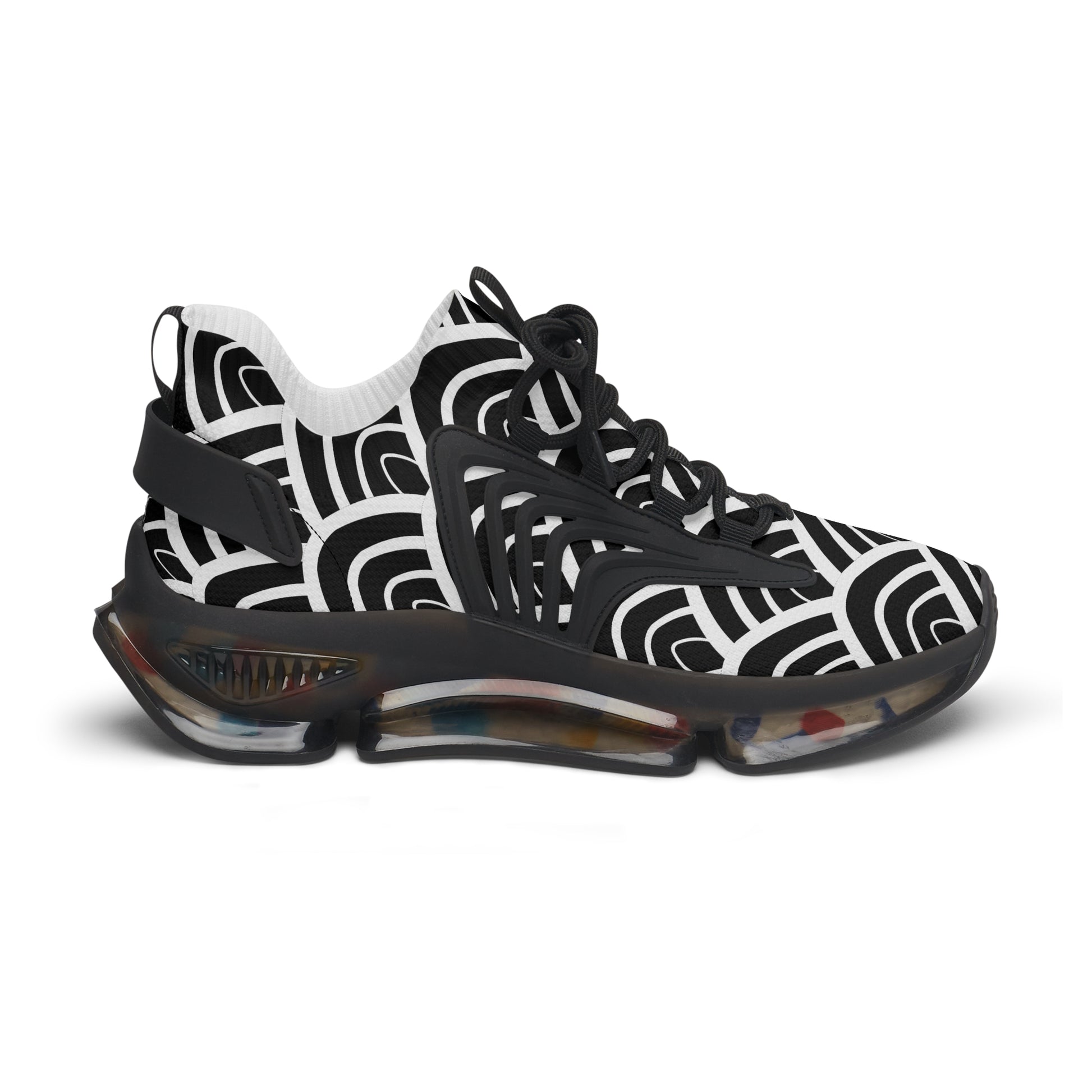 Damen Sneaker Schwarz Weiß Modern Wellen Design Atmungsaktiv