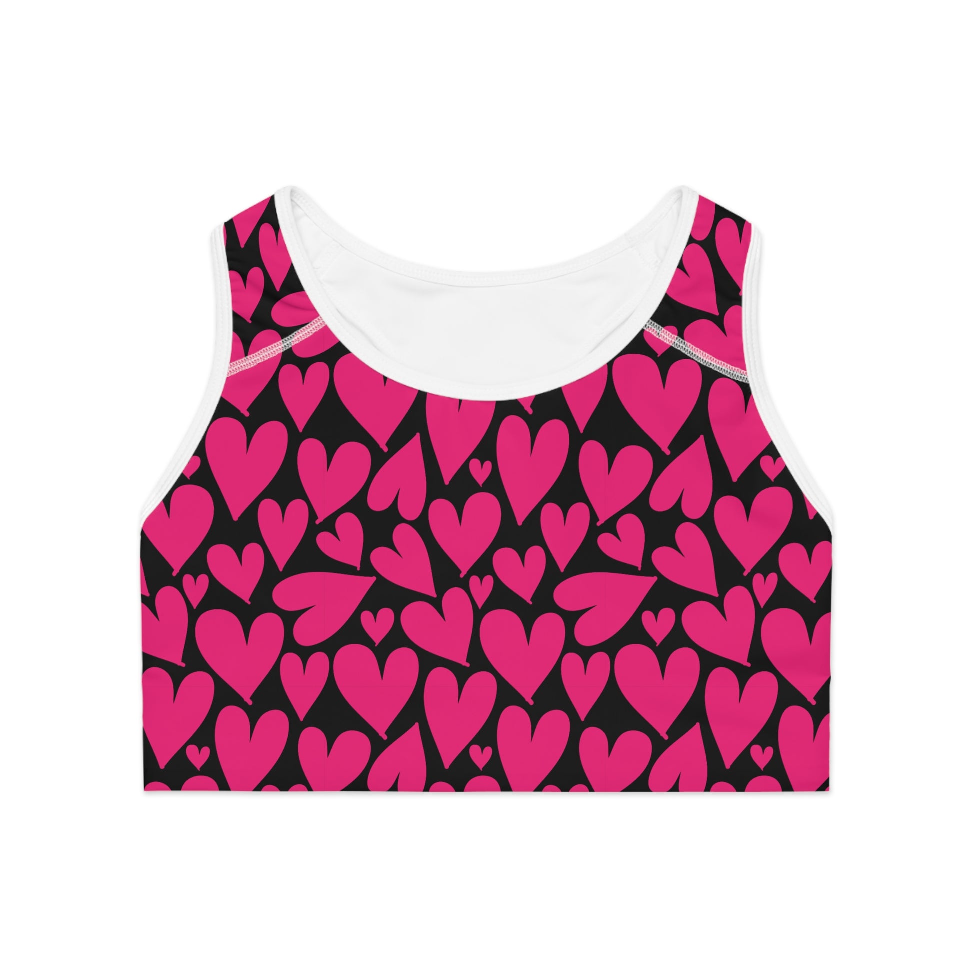 Damen Sport BH Herz Print Pink Schwarz Atmungsaktiv Yoga Fitness Top