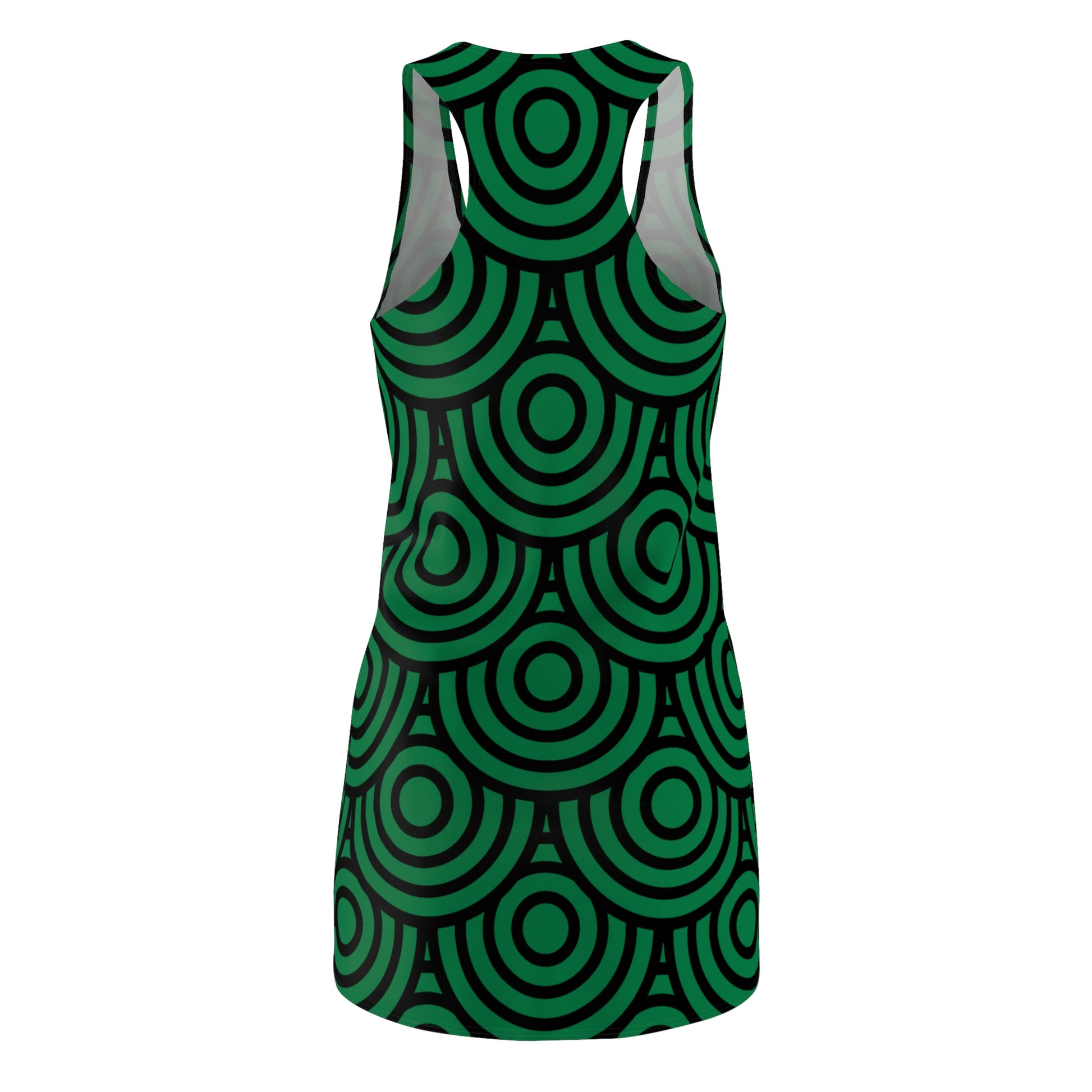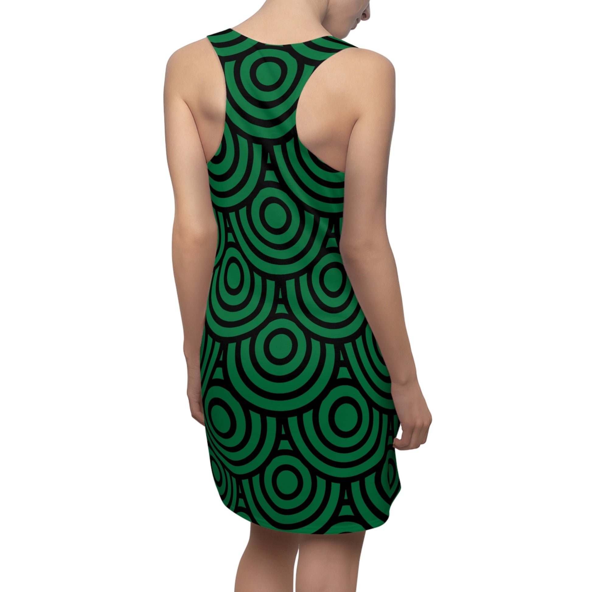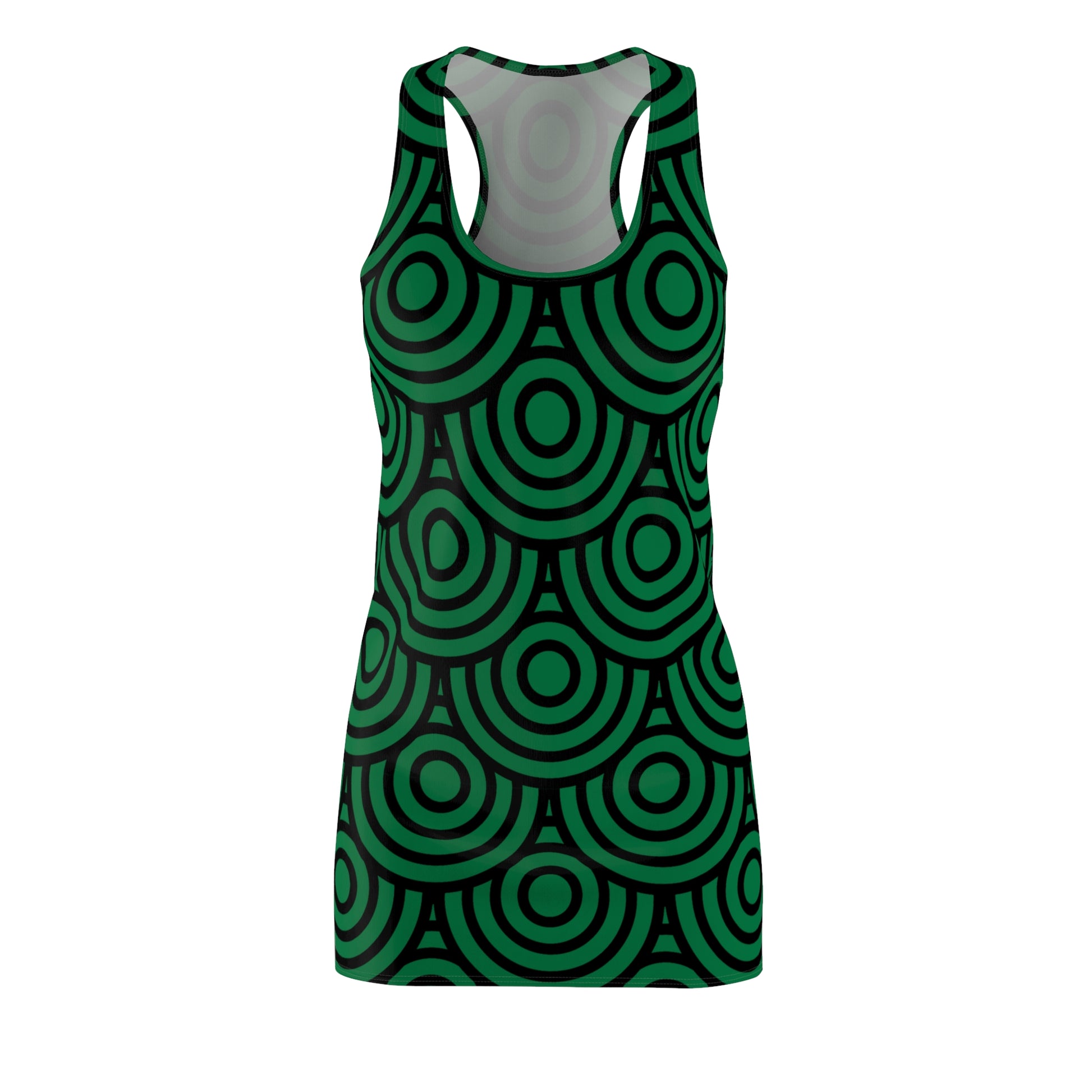 Dunkelgrünes Kreis Muster Racerback Kleid – Modern & Stilvoll