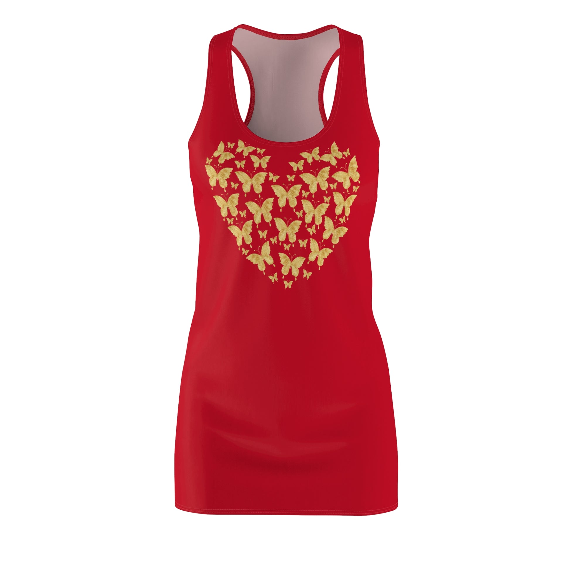 Dunkelrot Schmetterlingsherz Racerback Kleid – Gold Sommerkleid