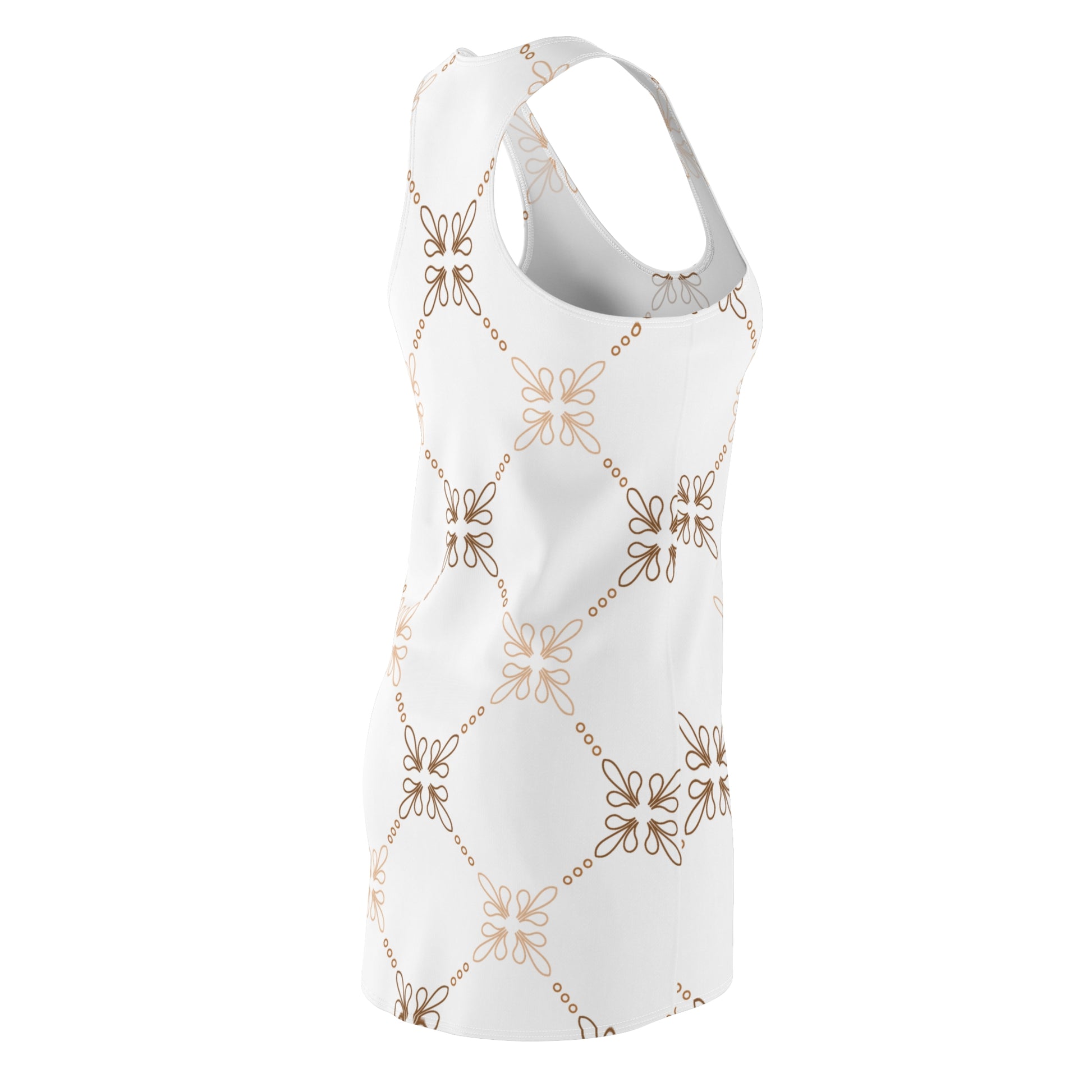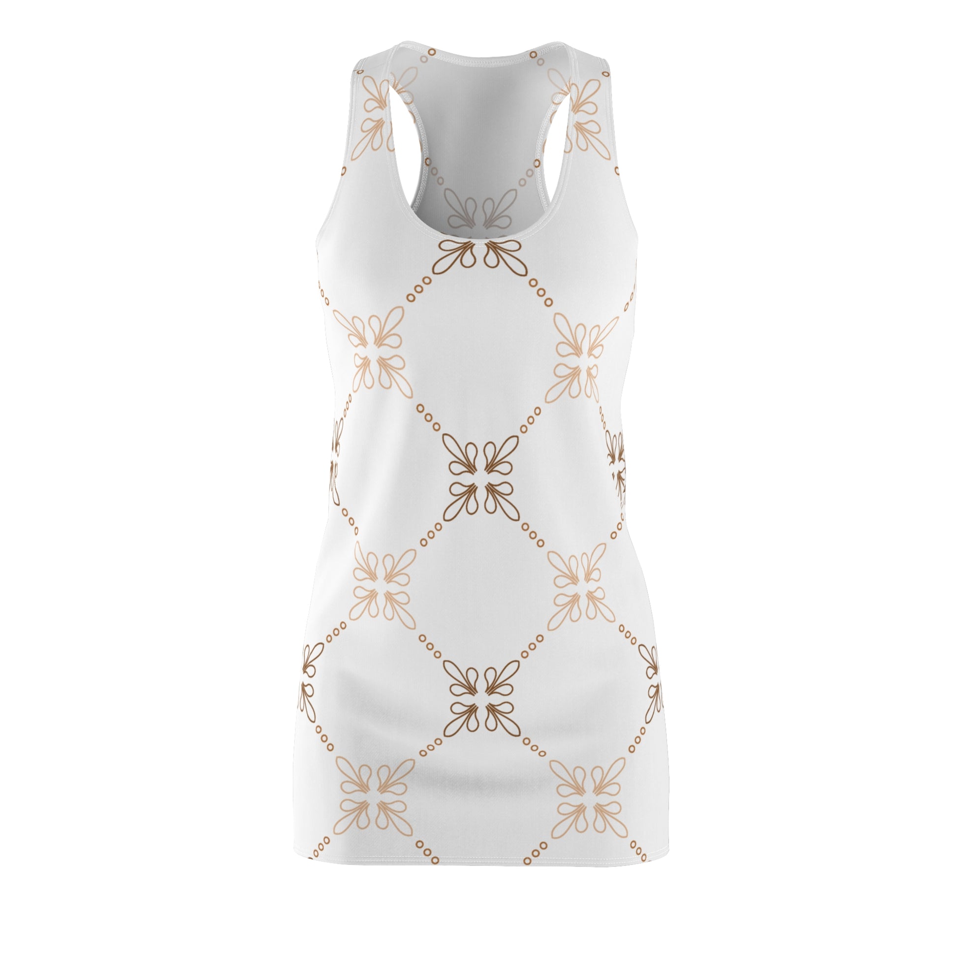 Beige Weiß Floral Racerback Kleid – Elegantes Sommerkleid