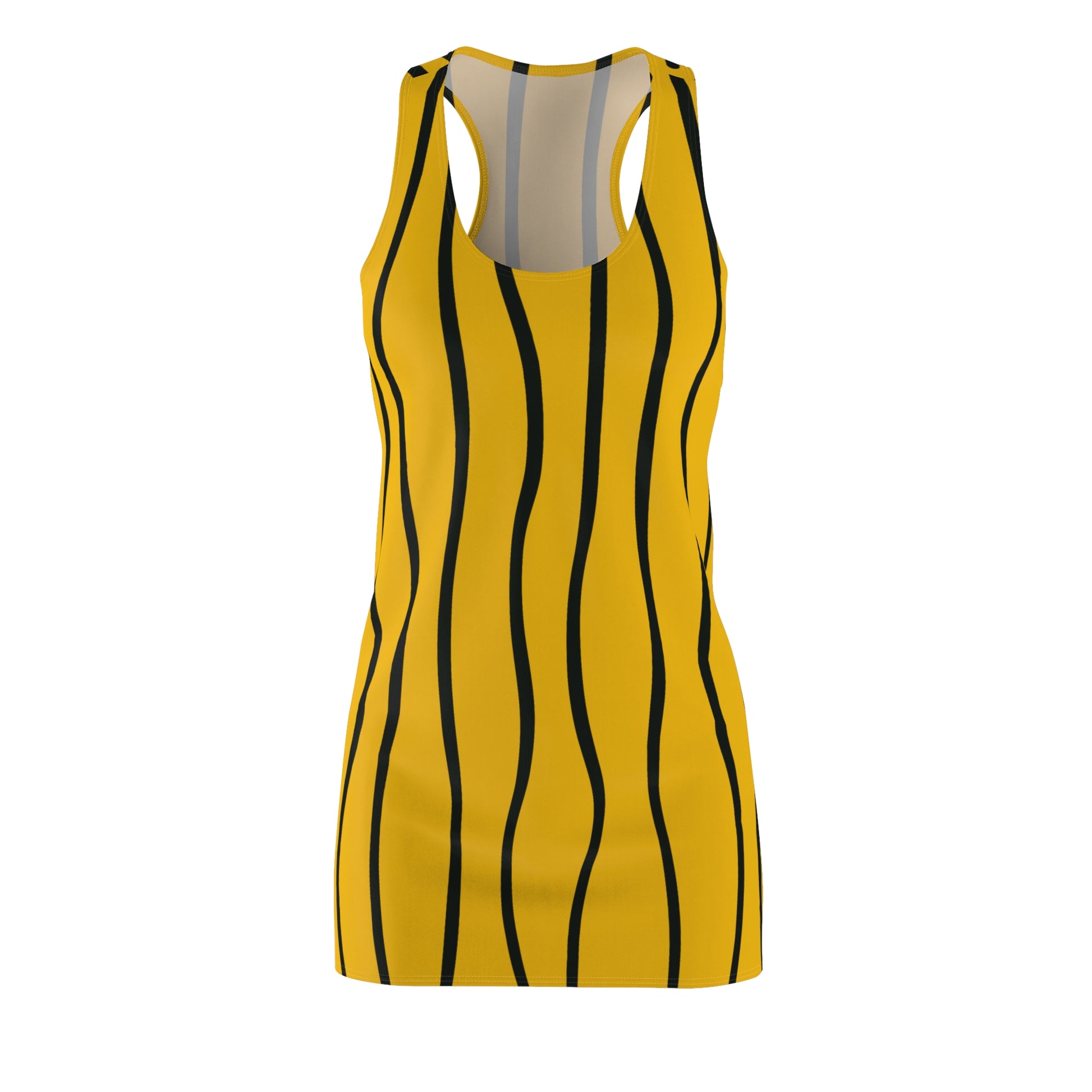 Gelb Schwarz Wellen Racerback Kleid – Modernes Sommerkleid