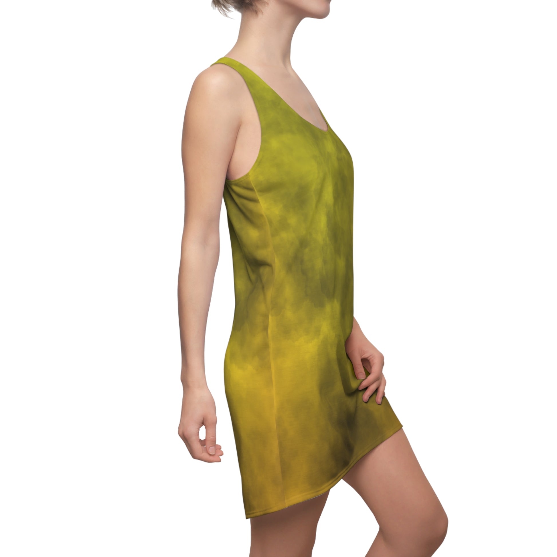 Gelbes Racerback Kleid – Sommerkleid mit abstraktem Wolkenmuster