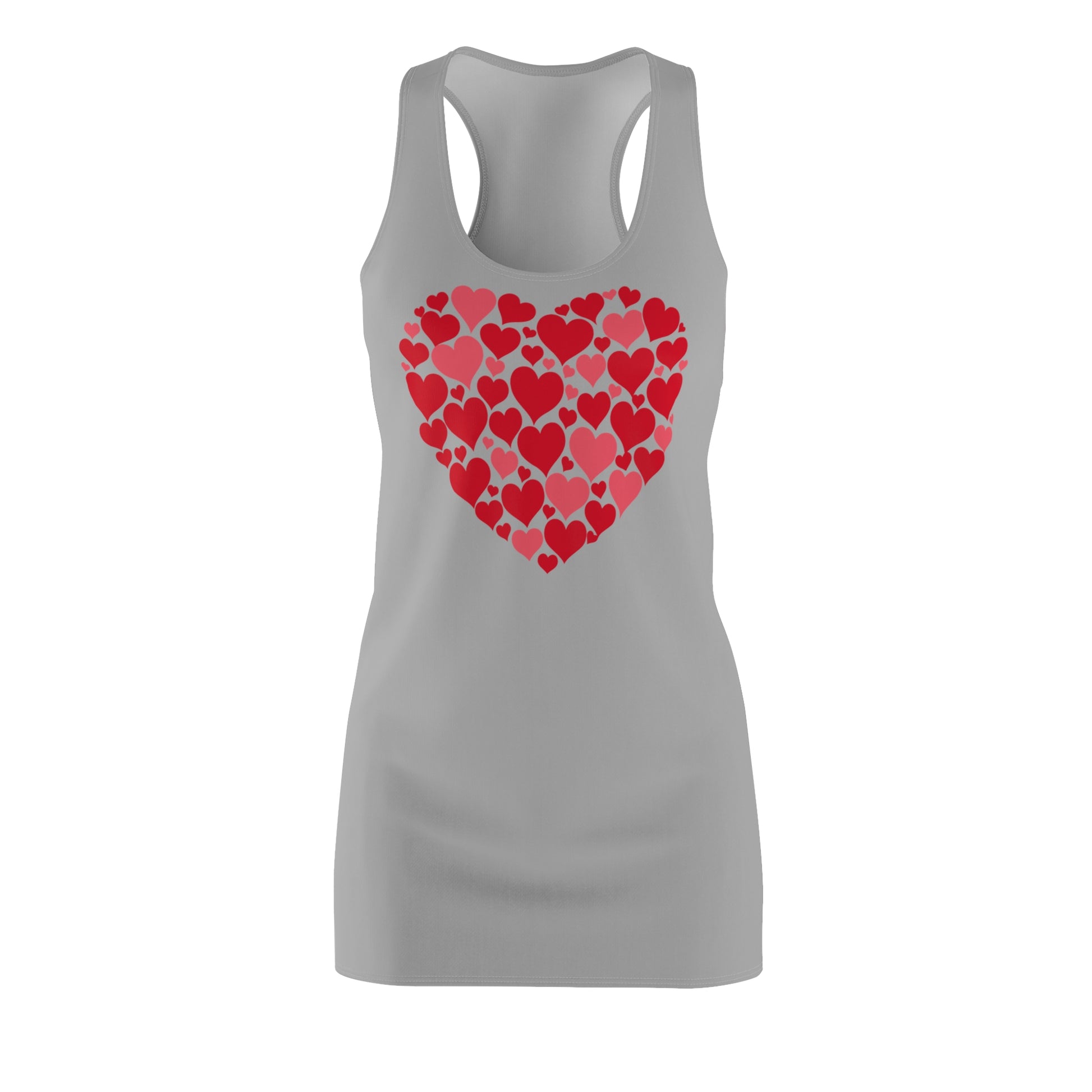 Graues Damen Kleid Herz Muster Weiss Rot Racerback Casual Party