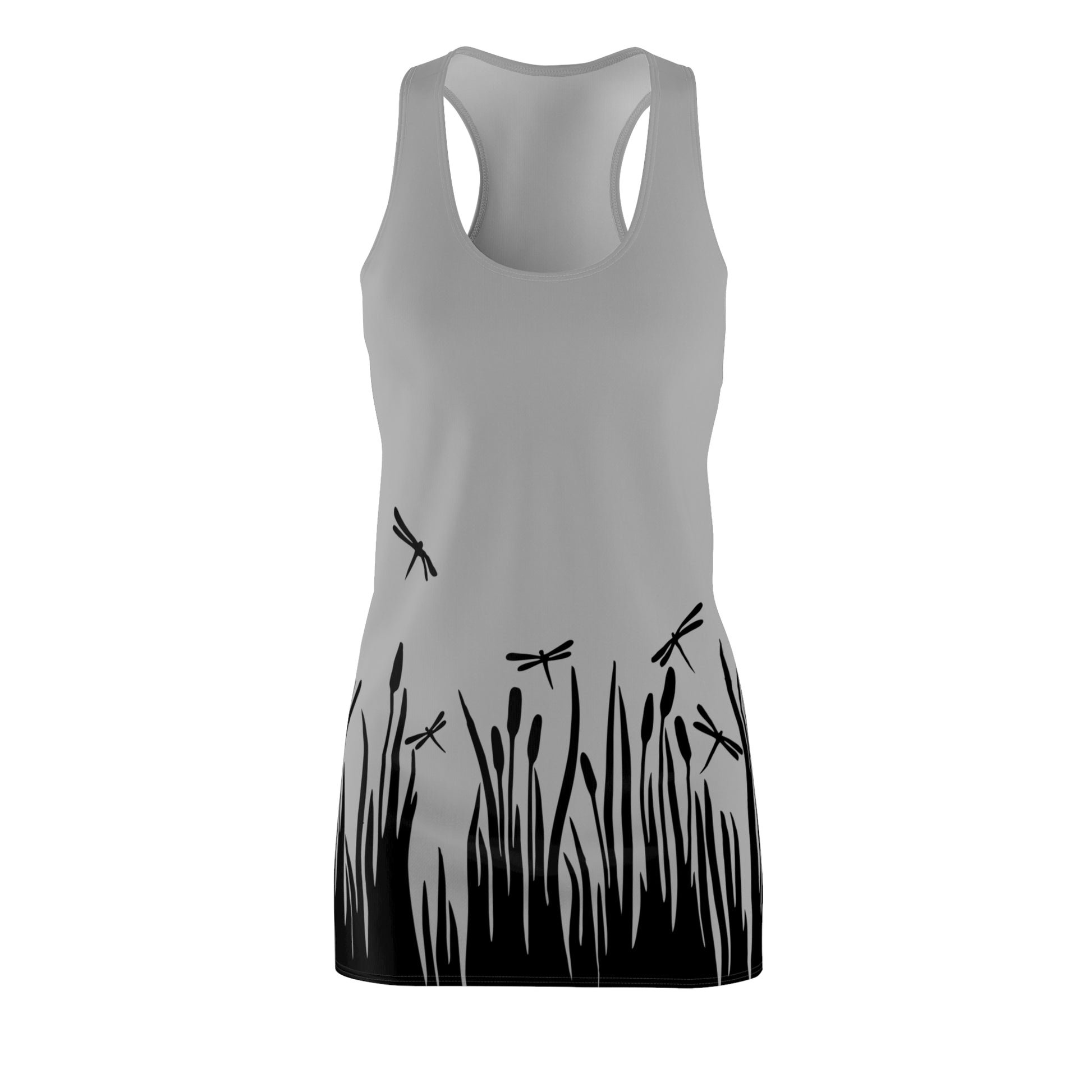 Graues Damen Kleid Libellen Design Racerback Sommer Freizeit Party