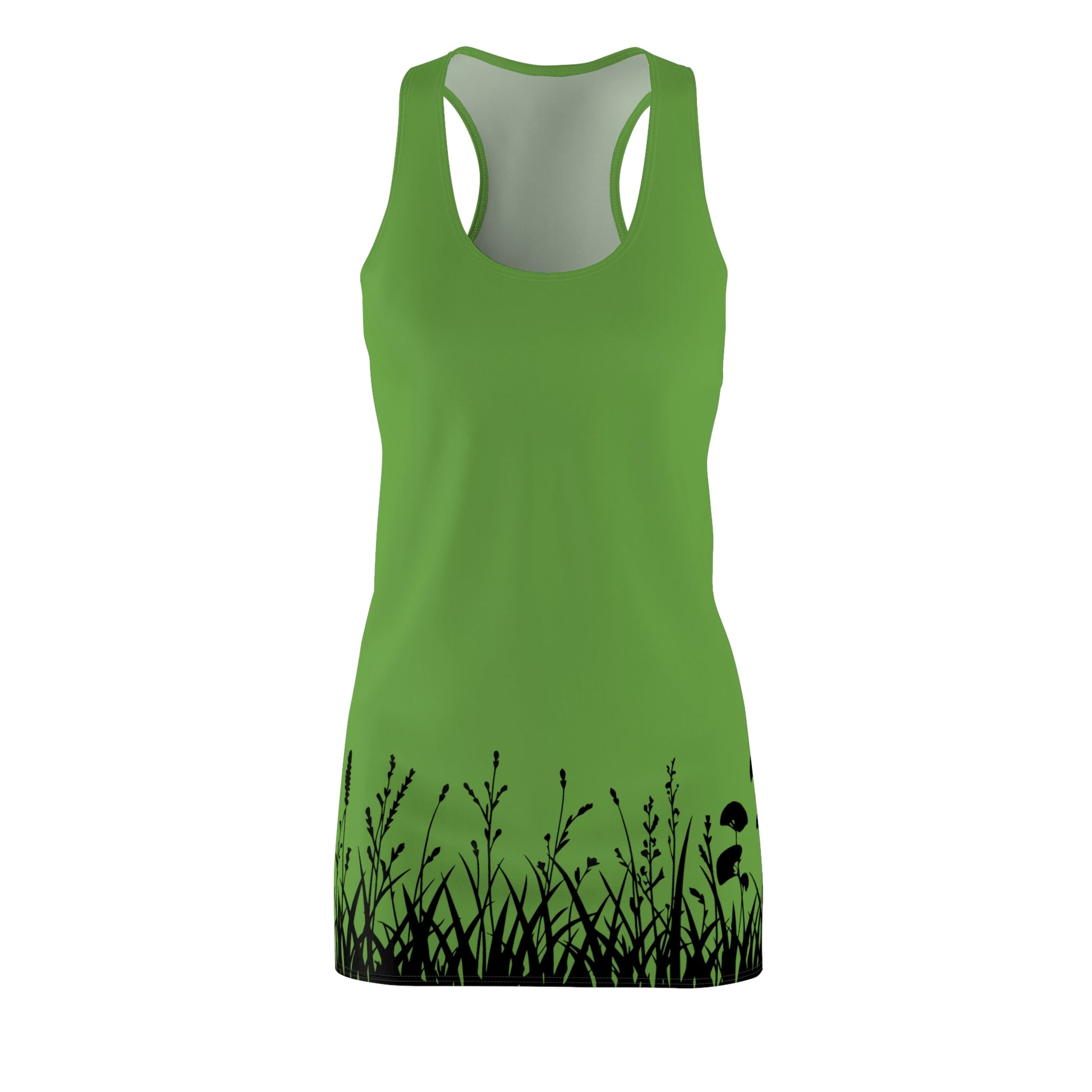 Grün Floral Silhouette Racerback Kleid – Elegantes Sommerkleid