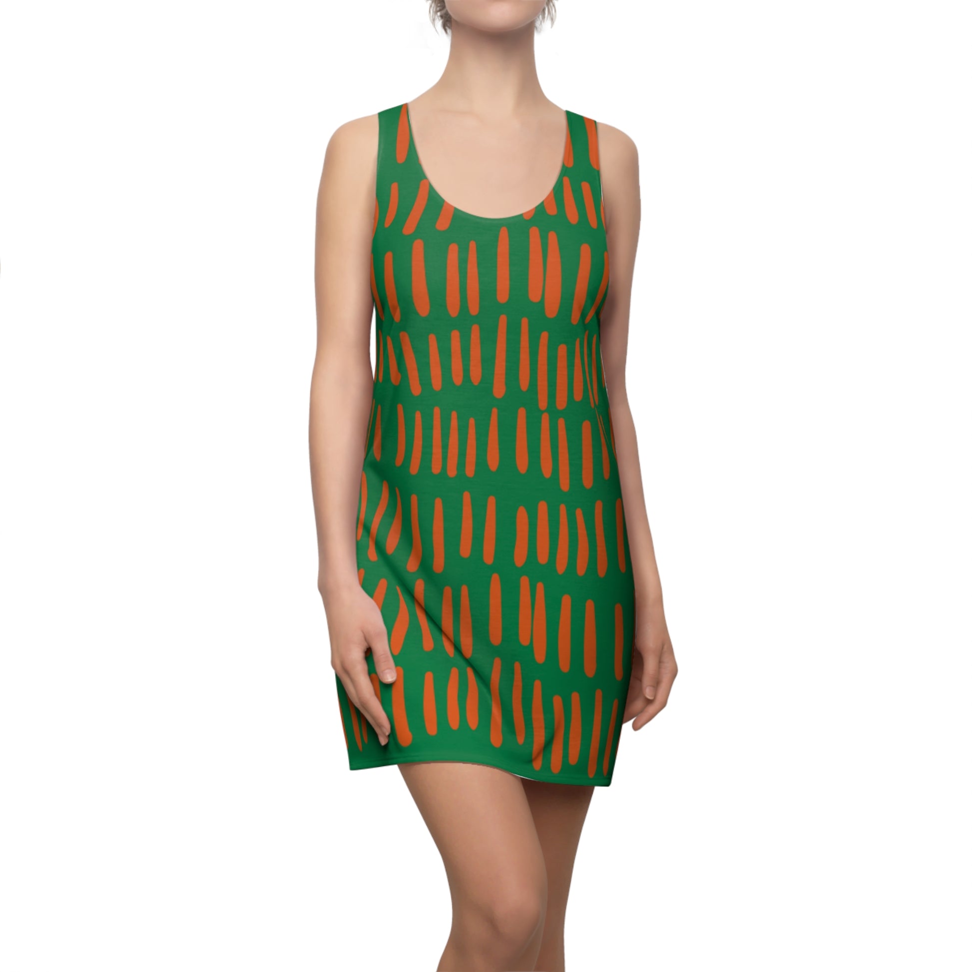 Grün Orange Boho Racerback Kleid – Modernes Sommerkleid