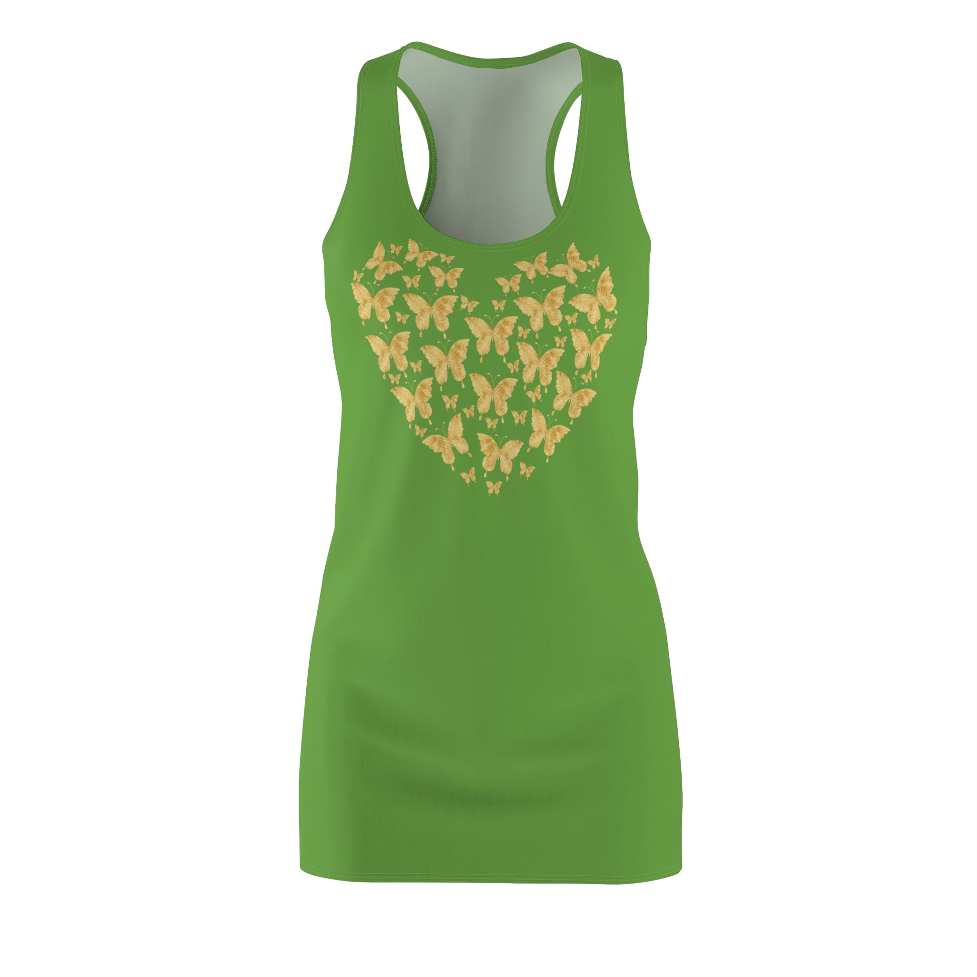 Grün Schmetterlingsherz Racerback Kleid – Gold Sommerkleid
