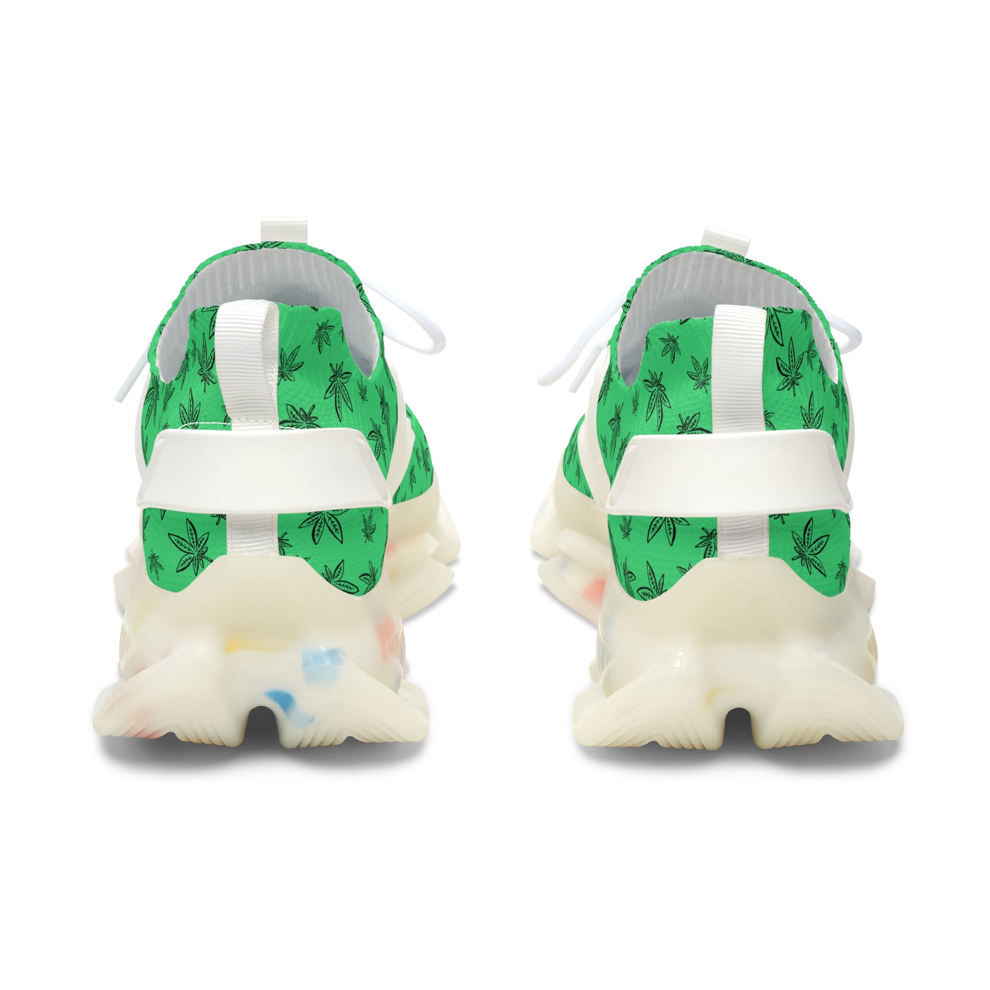 Grüne Damen Sneaker mit Cannabis Print – Trendige Freizeitschuhe