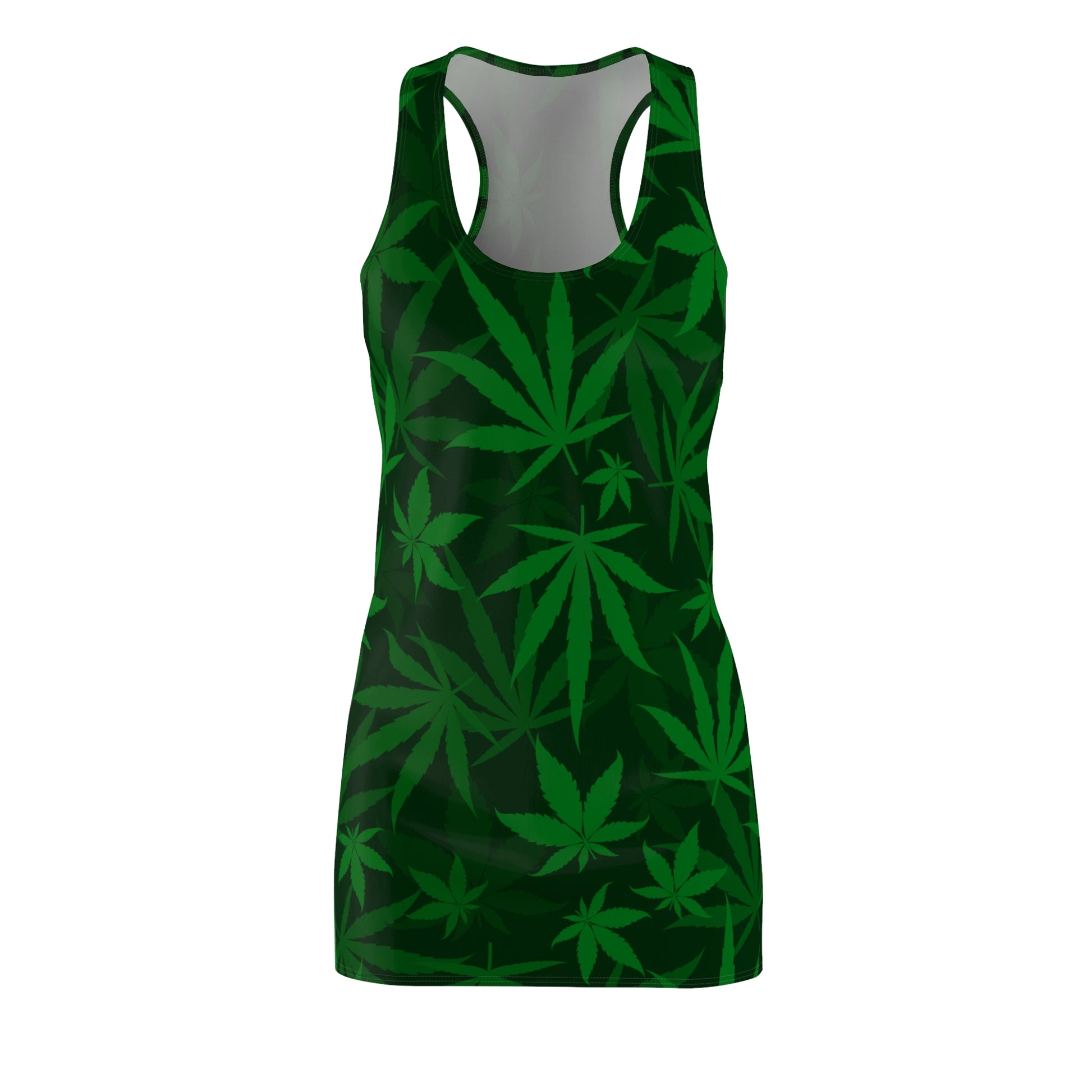 Damen Kleid Cannabis Blatt Grün Racerback Sommer Festival