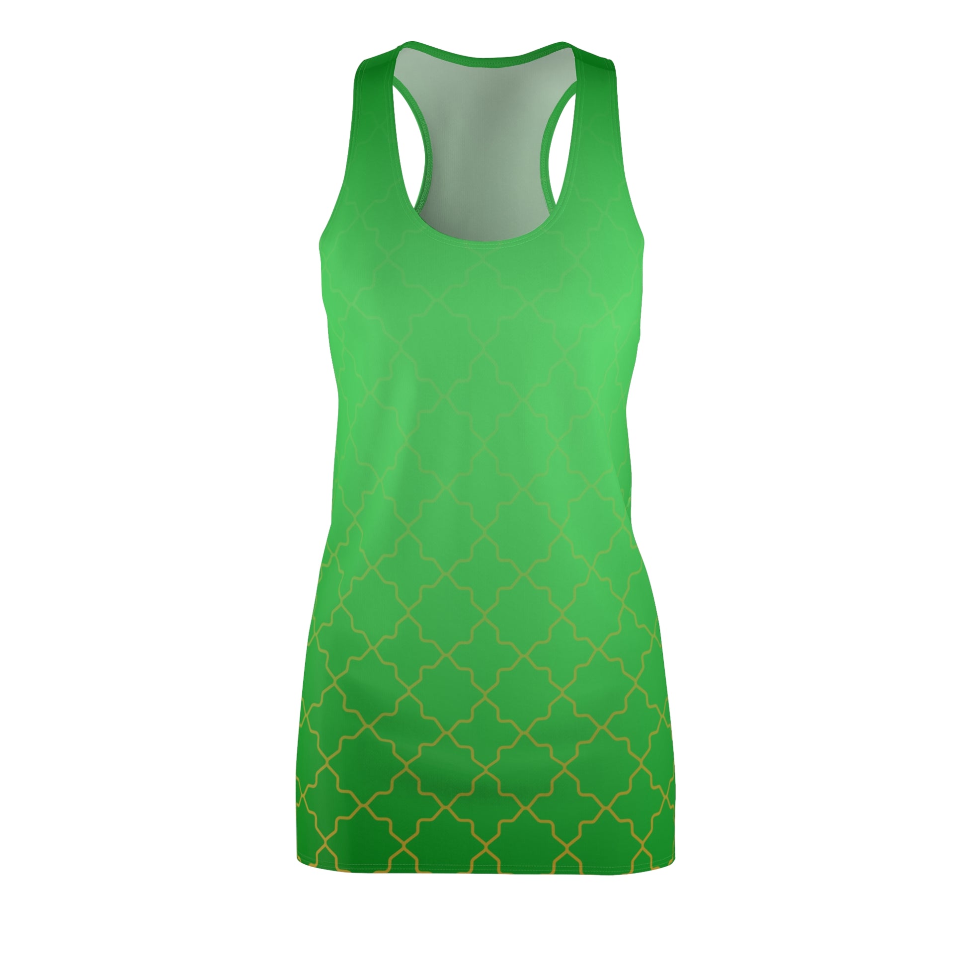 Grünes Racerback Kleid mit goldenem Gittermuster & Farbverlauf