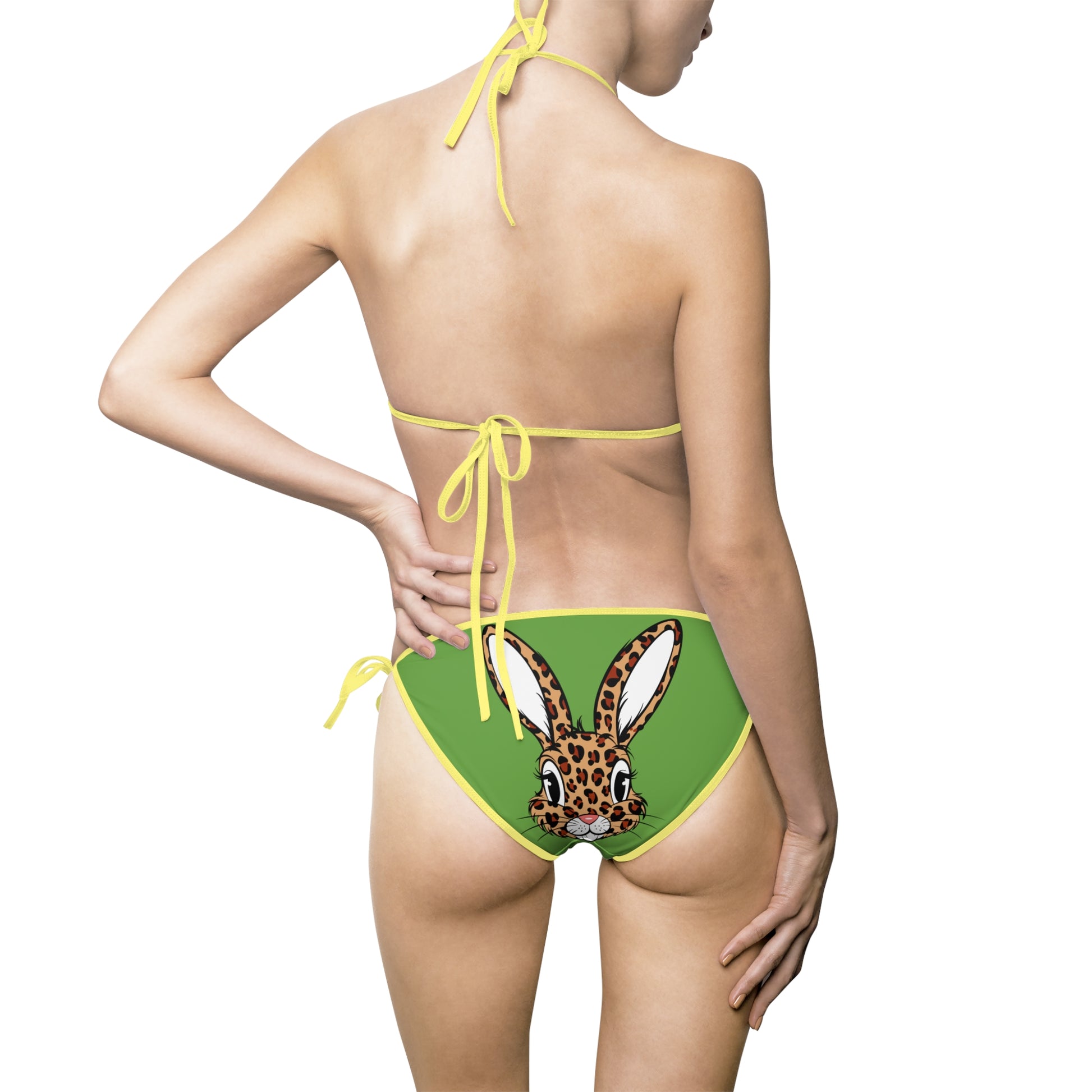 Hasen Bikini Damen – Zweiteiliger Bikini mit Leoparden Design grün
