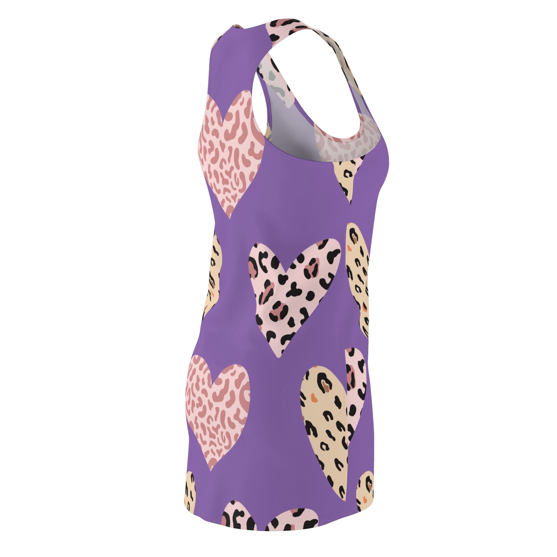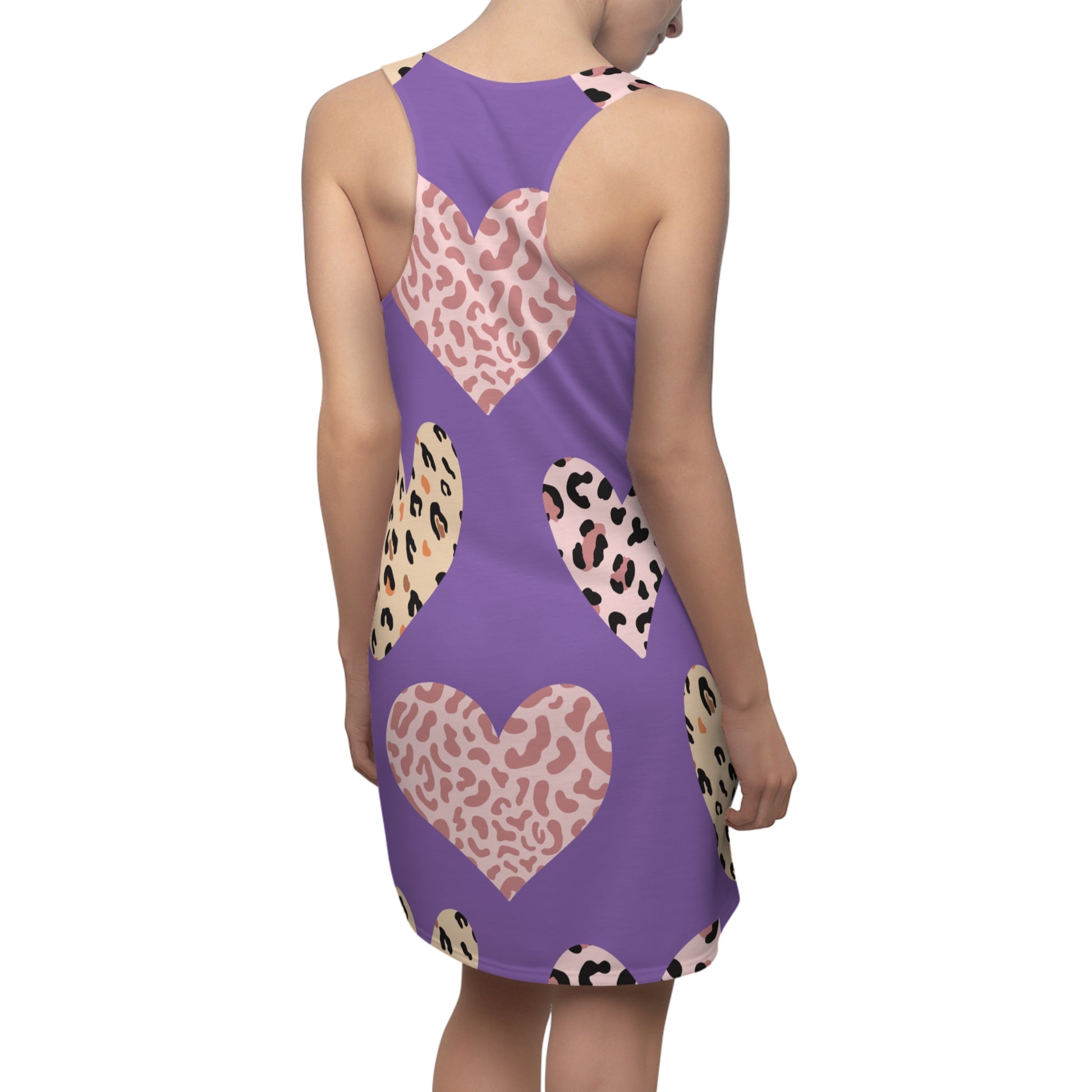Hell Lila Herz Leopard Racerback Kleid – Weiß Pink Sommerkleid