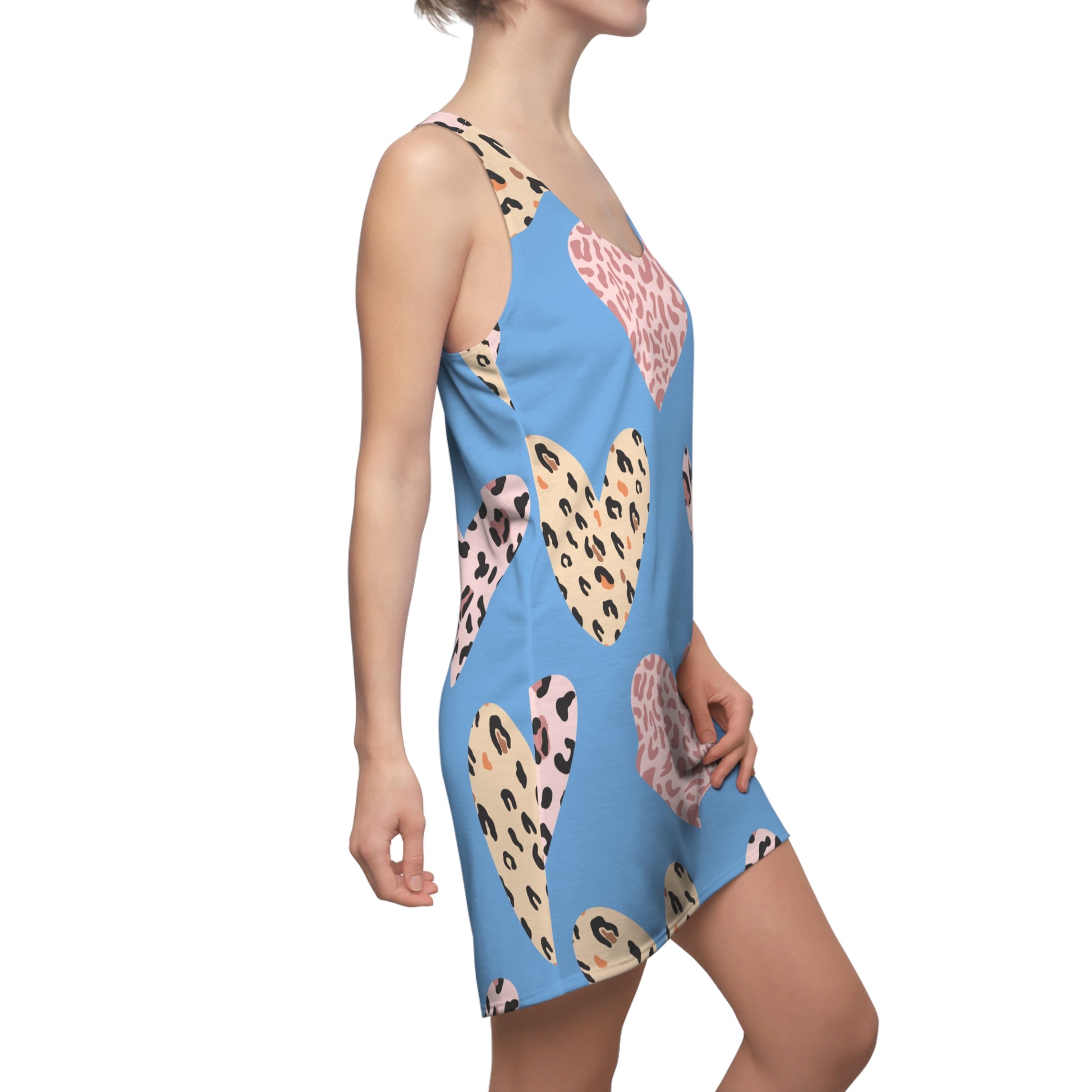 Hellblau Herz Leopard Racerback Kleid – Weiß Pink Sommerkleid