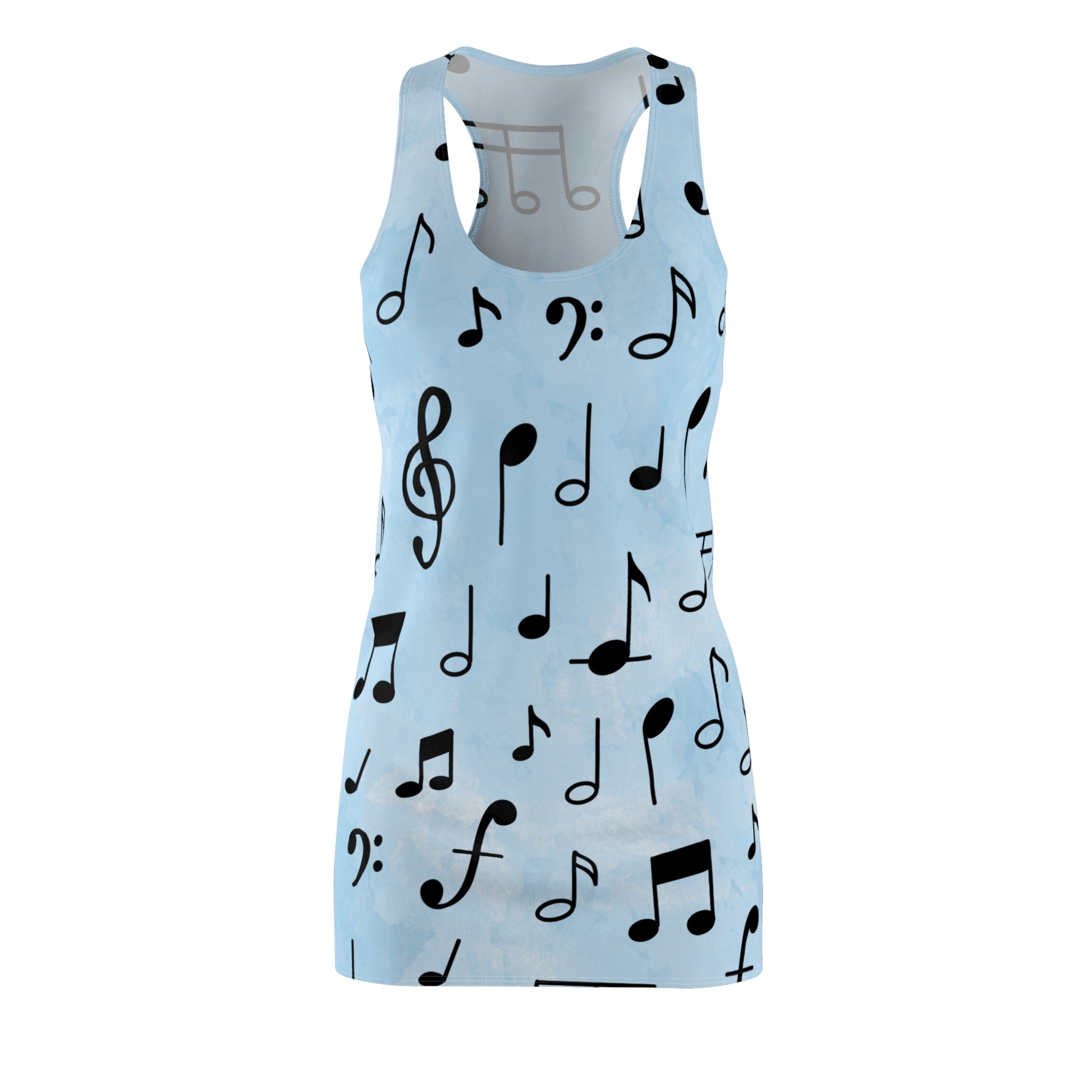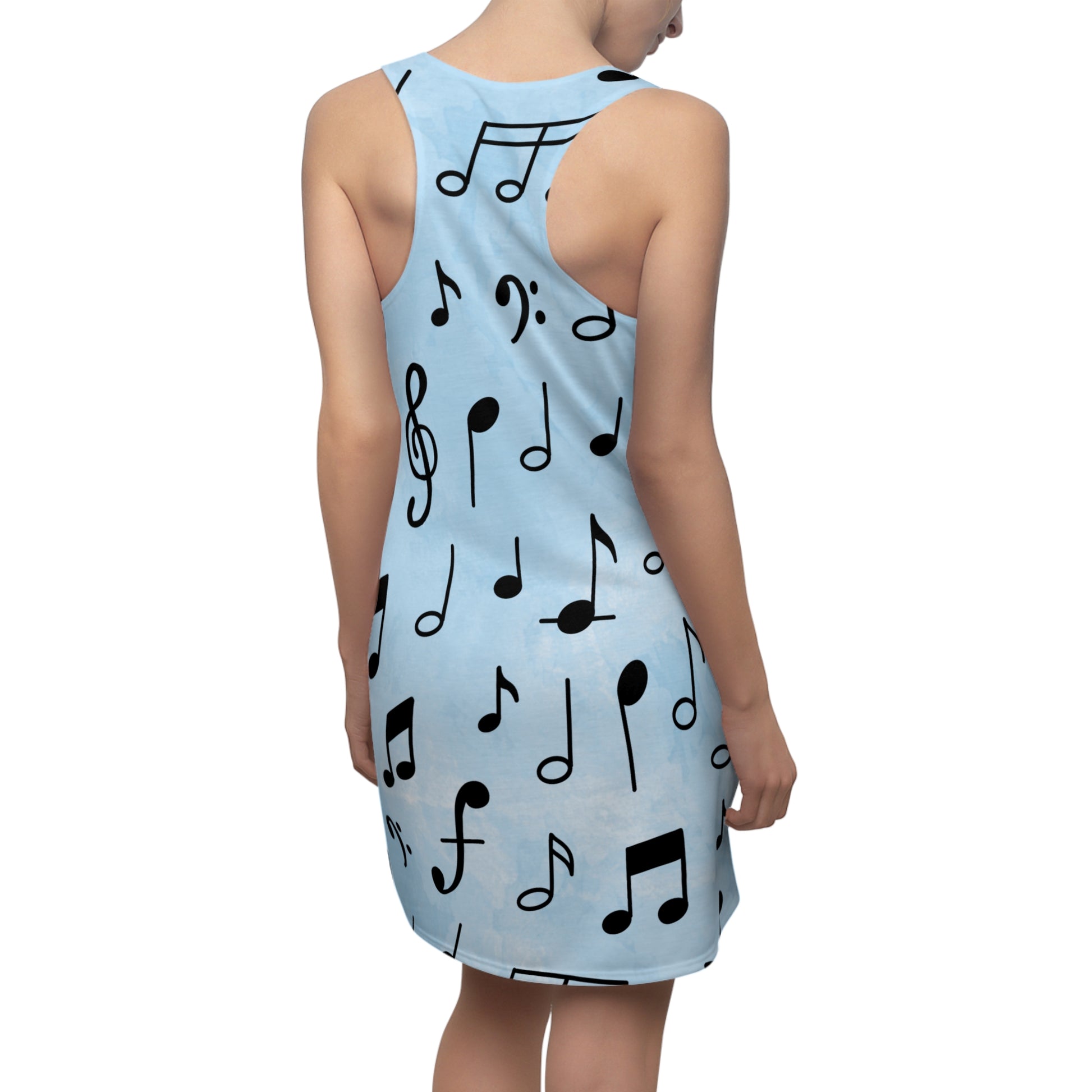 Hellblaues Racerback Kleid – Sommerkleid mit Musiknoten für Damen