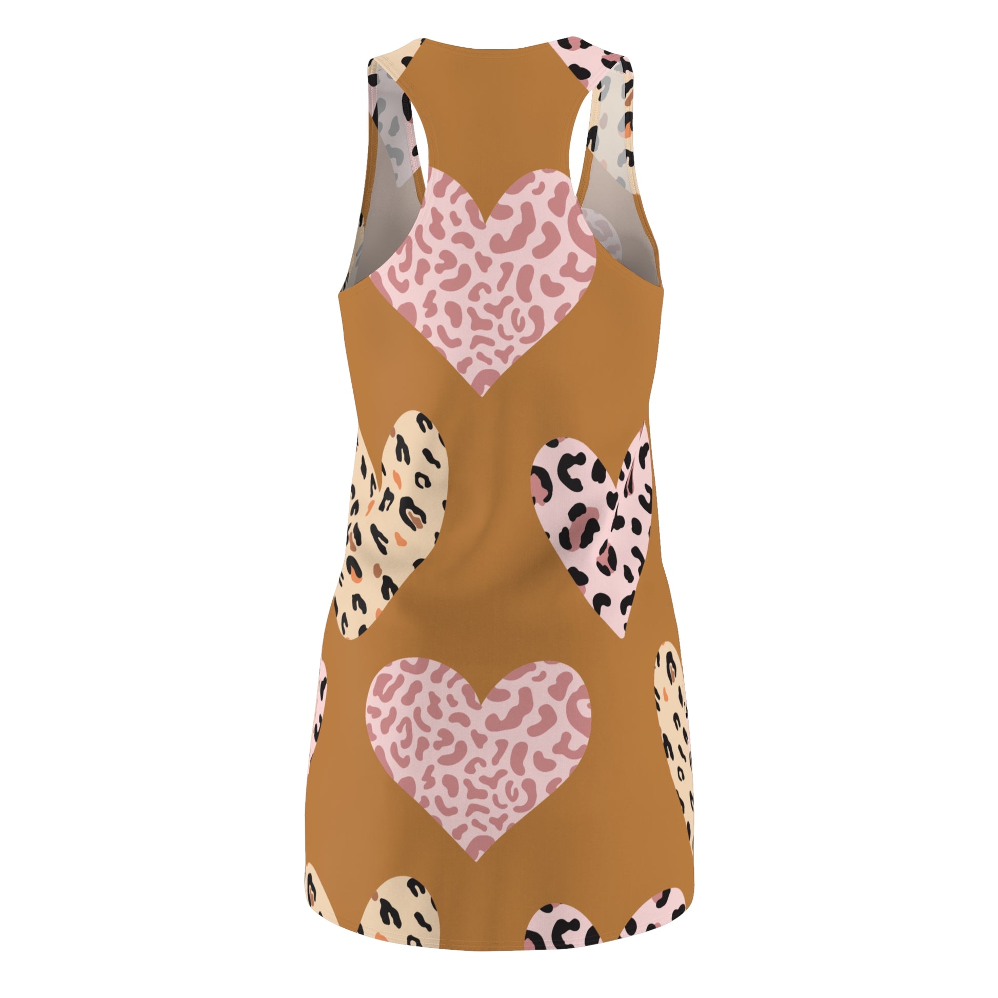 Hellbraun Herz Leopard Racerback Kleid – Weiß Pink Sommerkleid