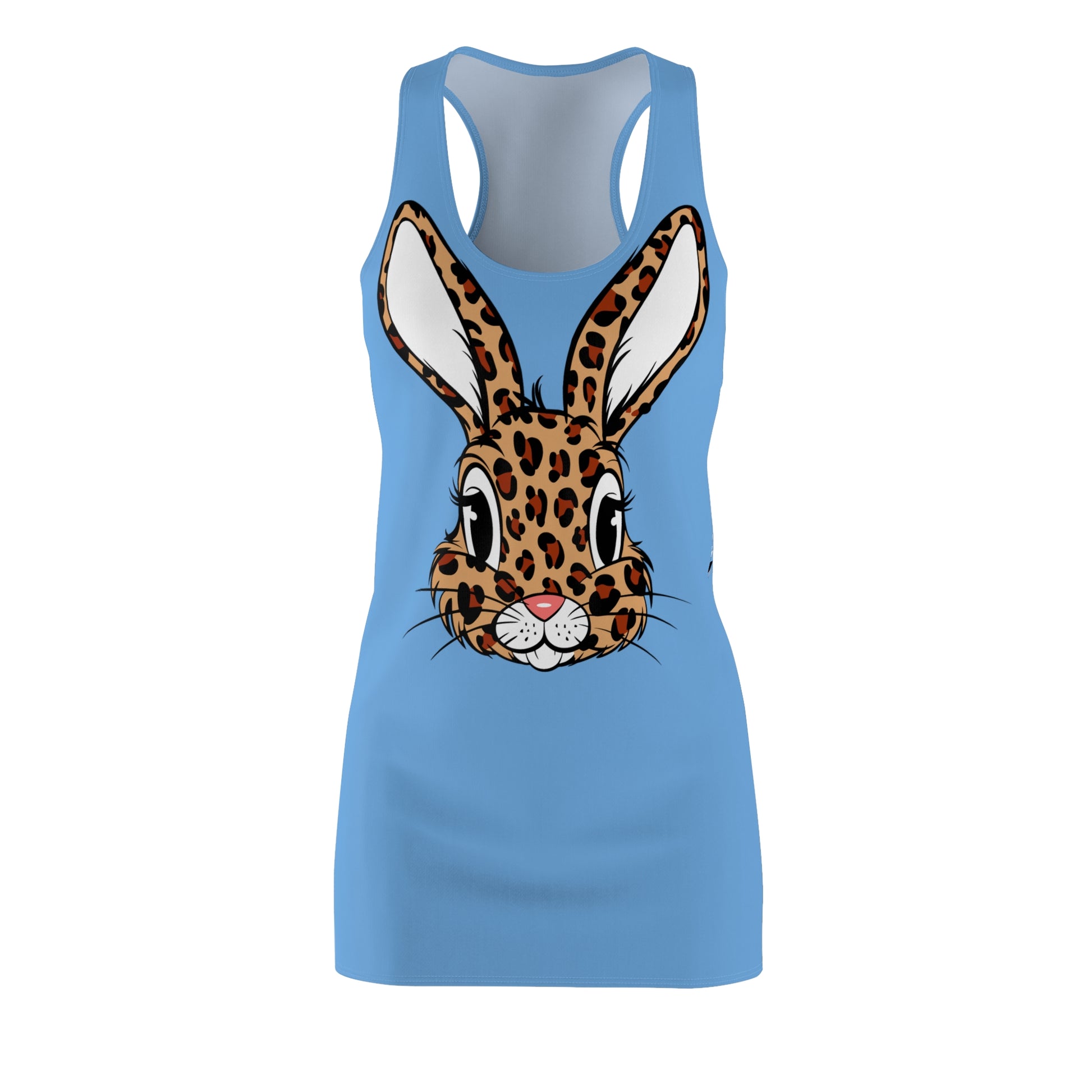 Leoparden Hase Racerback Kleid – Tierisch Hellblau