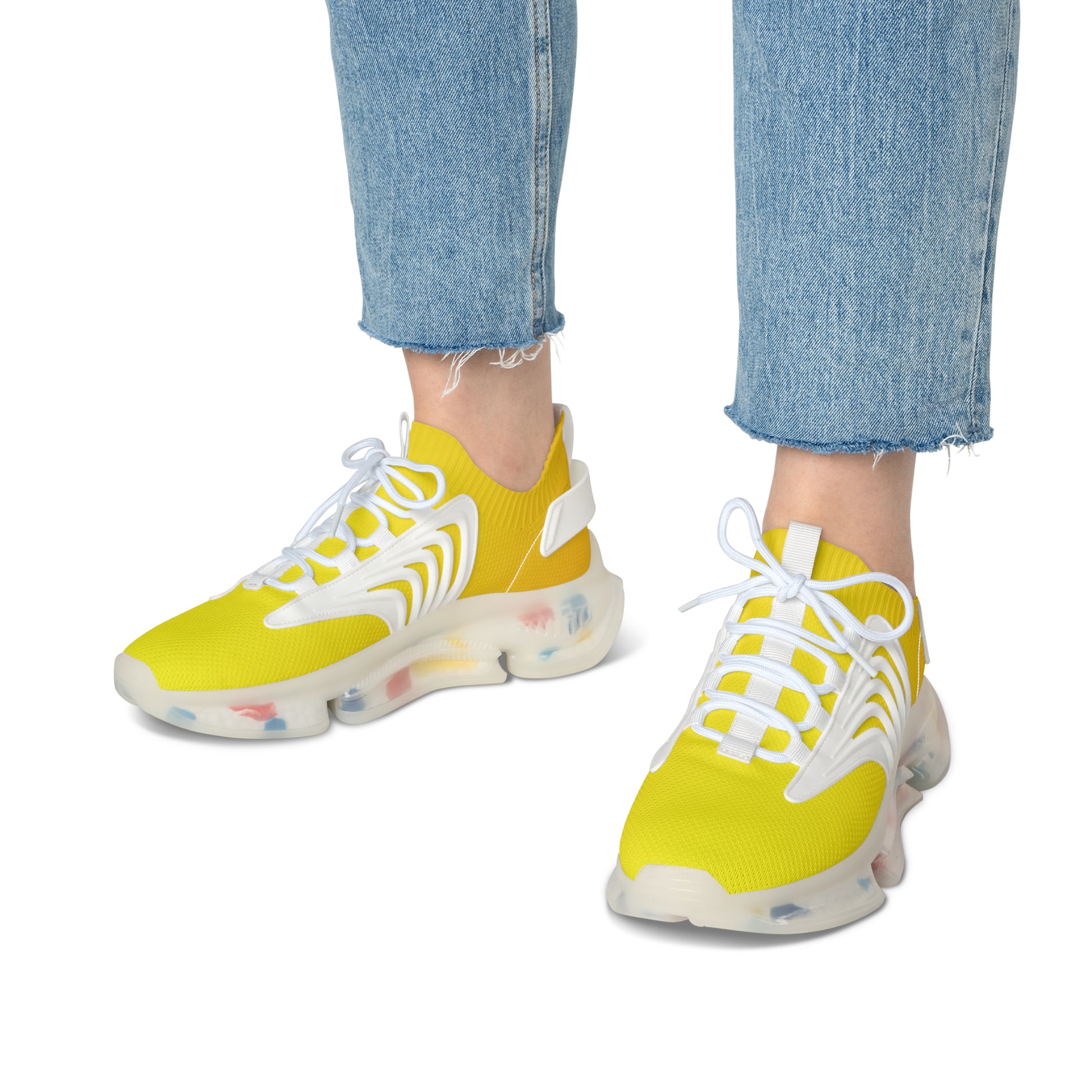 MauserDesign Damen Sneaker gelb Mesh Atmungsaktiv Bequeme Turnschuhe