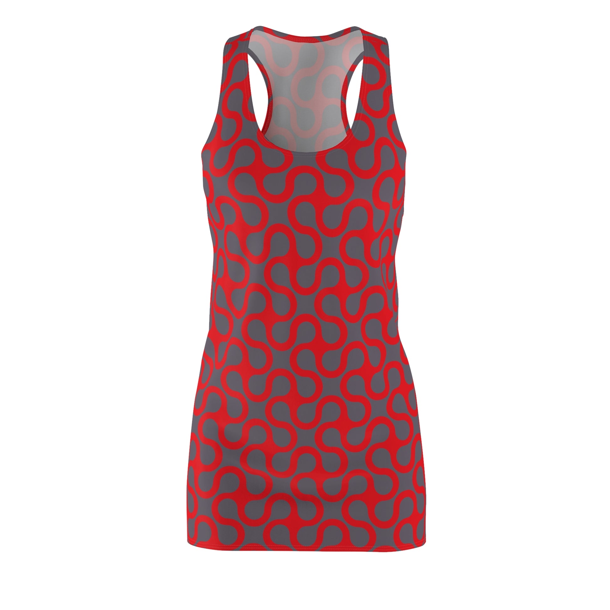Rotes Damen Kleid Abstrakt Grau Racerback Sommer Casual