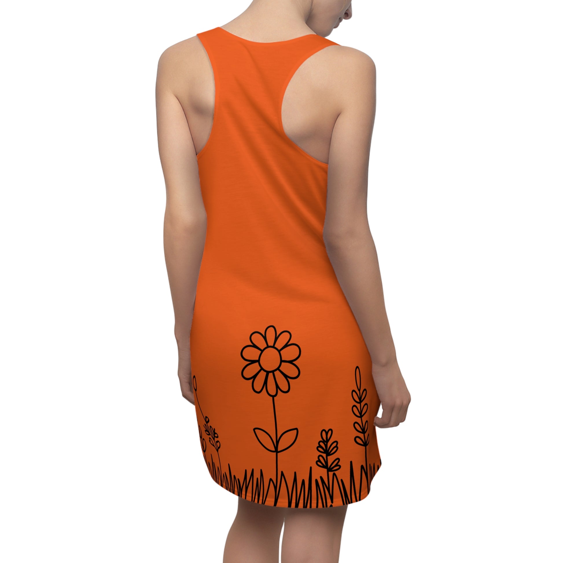 Orange Blumen Racerback Kleid – Bequemes Sommerkleid