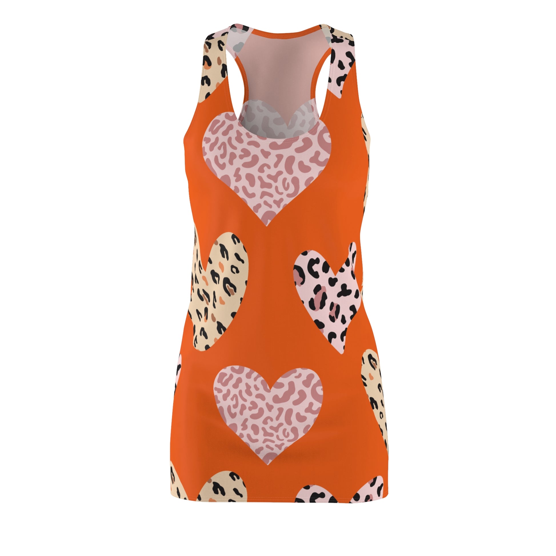 Orange Herz Leopard Racerback Kleid – Weiß Pink Sommerkleid