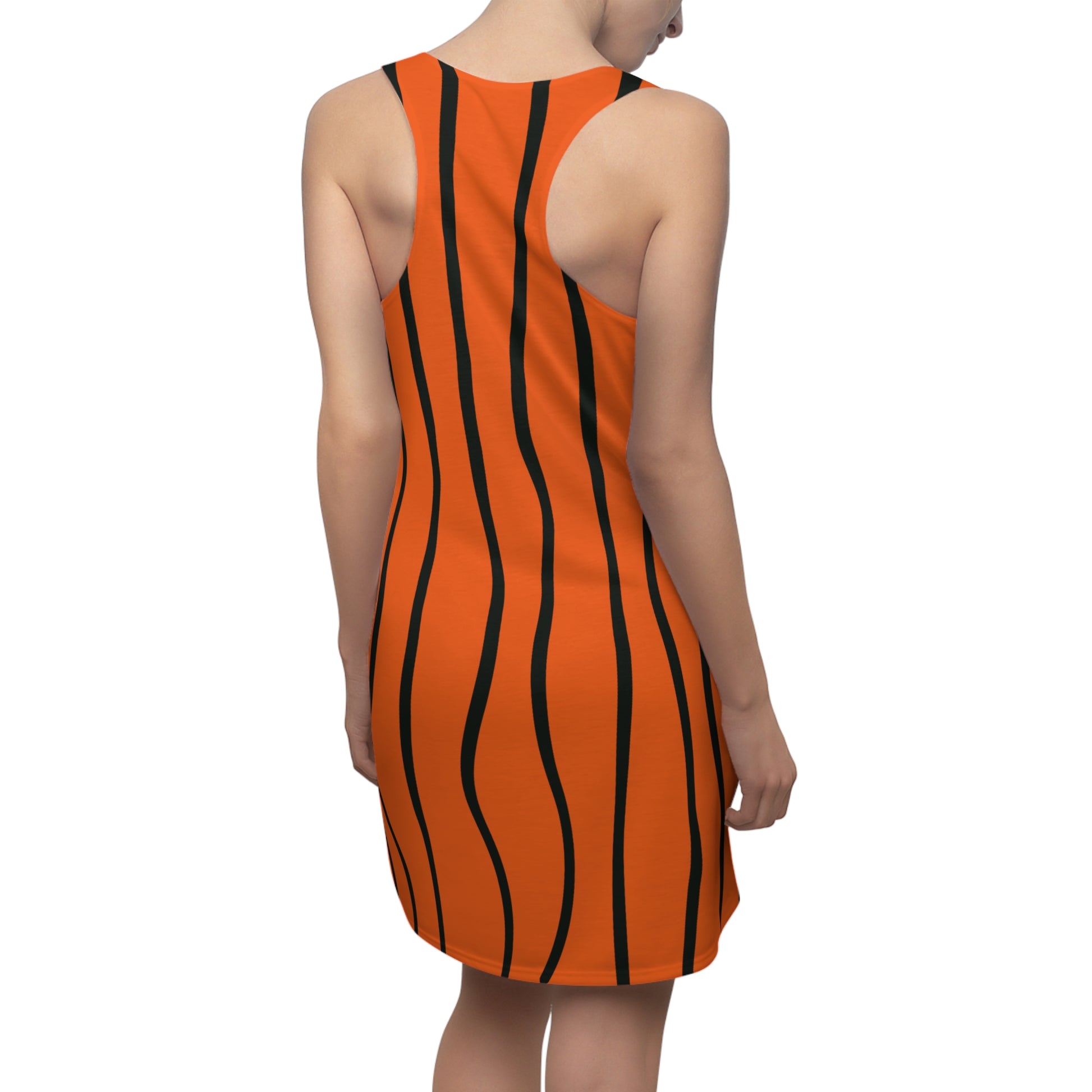Orange Schwarz Wellen Racerback Kleid – Modernes Sommerkleid